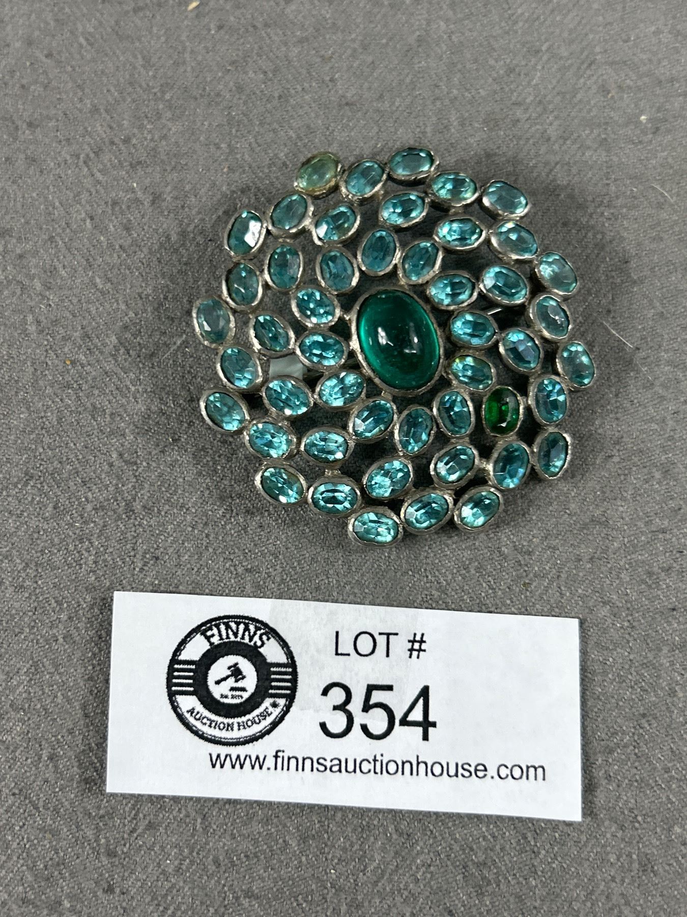 Awesome Genuine 1910 Edwardian Silver Aquamarine Brooch