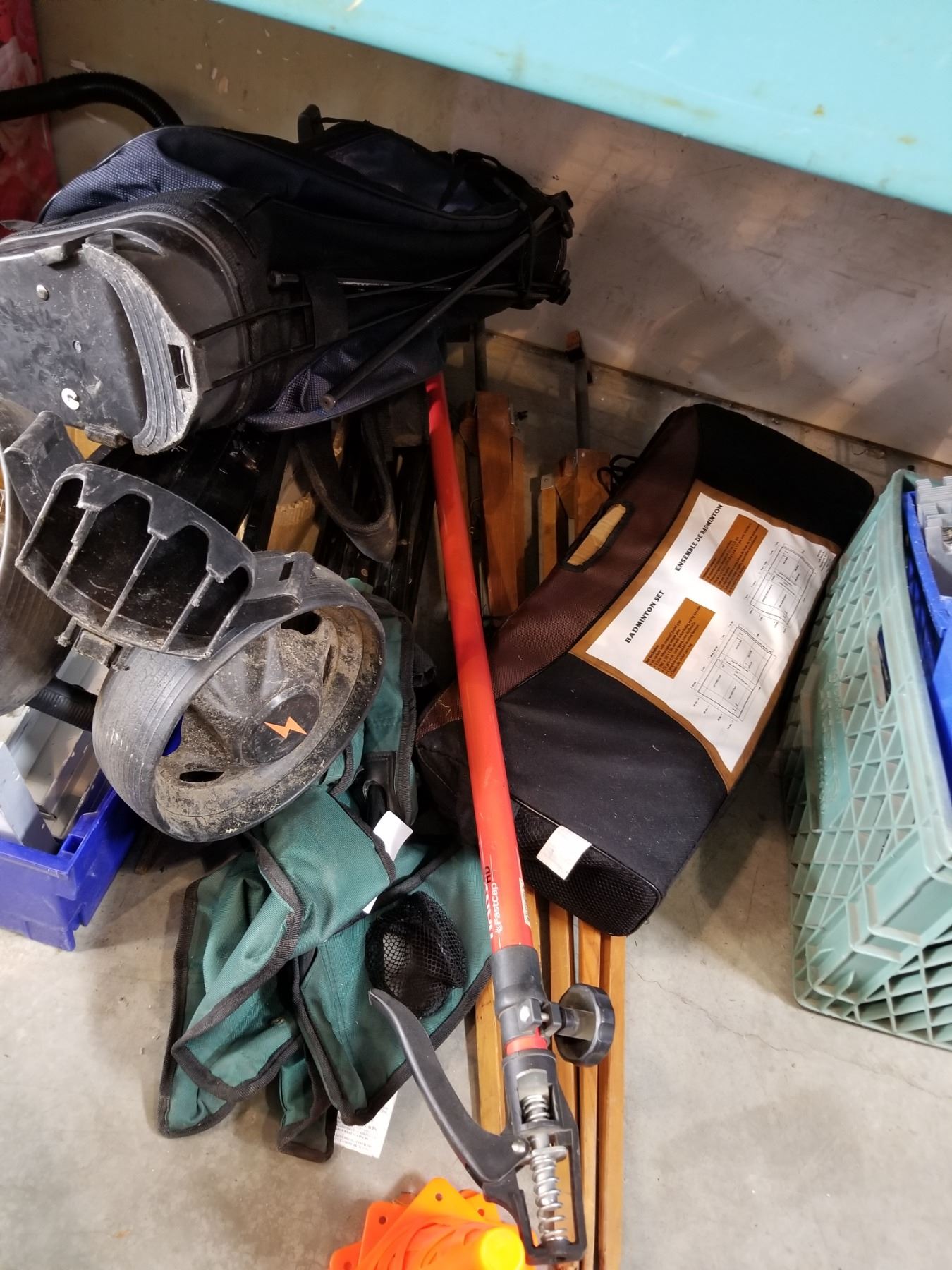 BADMINTON SET, CAMP CHAIR, TRIPODS, AND STAND