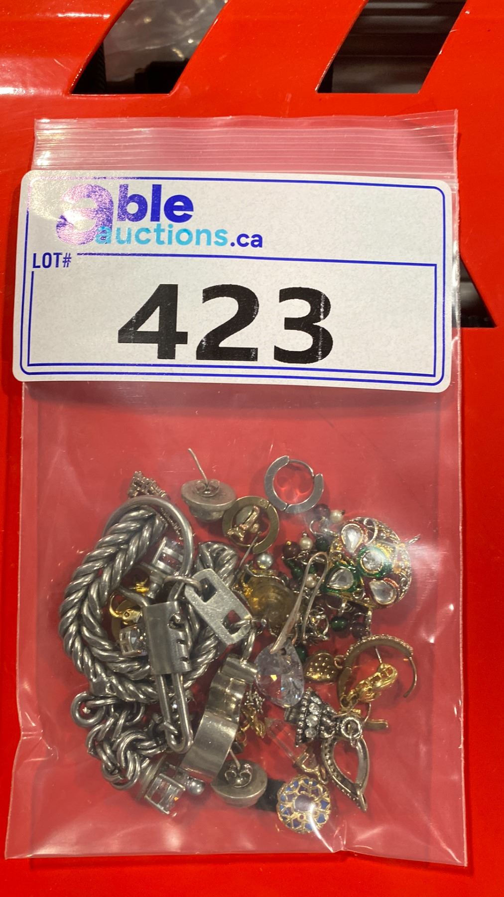 BAG OF ASSORTED COSTUME JEWELRY, EARRINGS, PINS, & PENDANTS