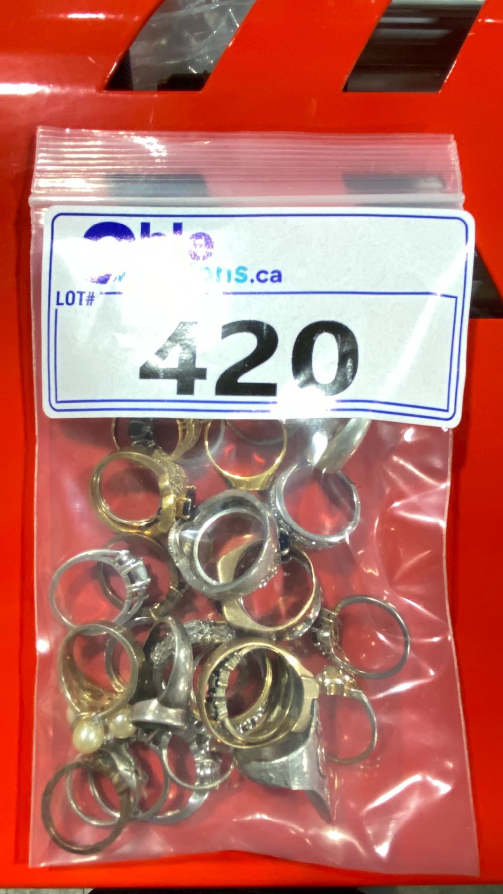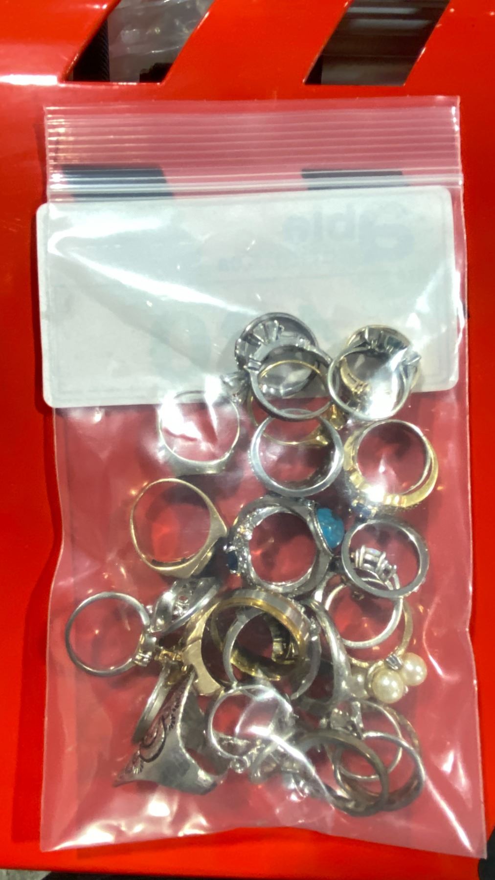 BAG OF ASSORTED GOLD RINGS & COSTUME JEWELRY RINGS