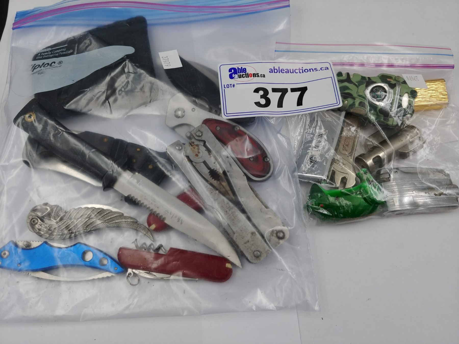 BAG OF ASSORTED KNIVES AND BAG OF ASSORTED LIGHTERS