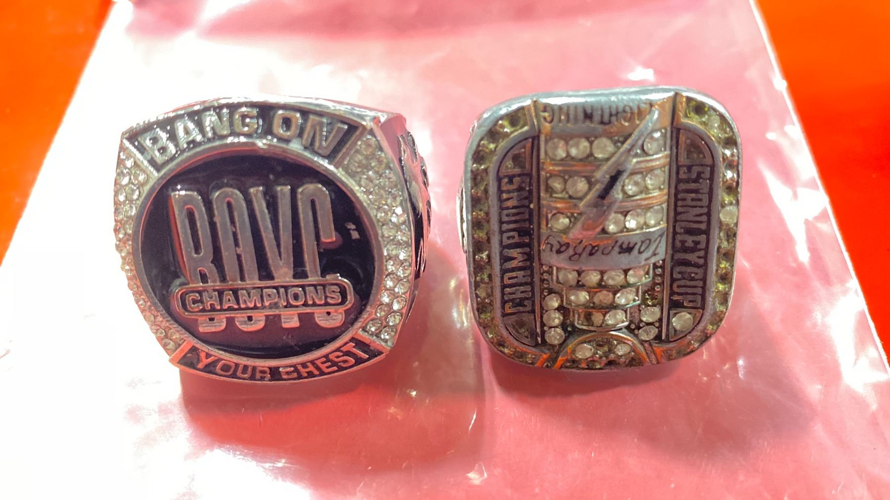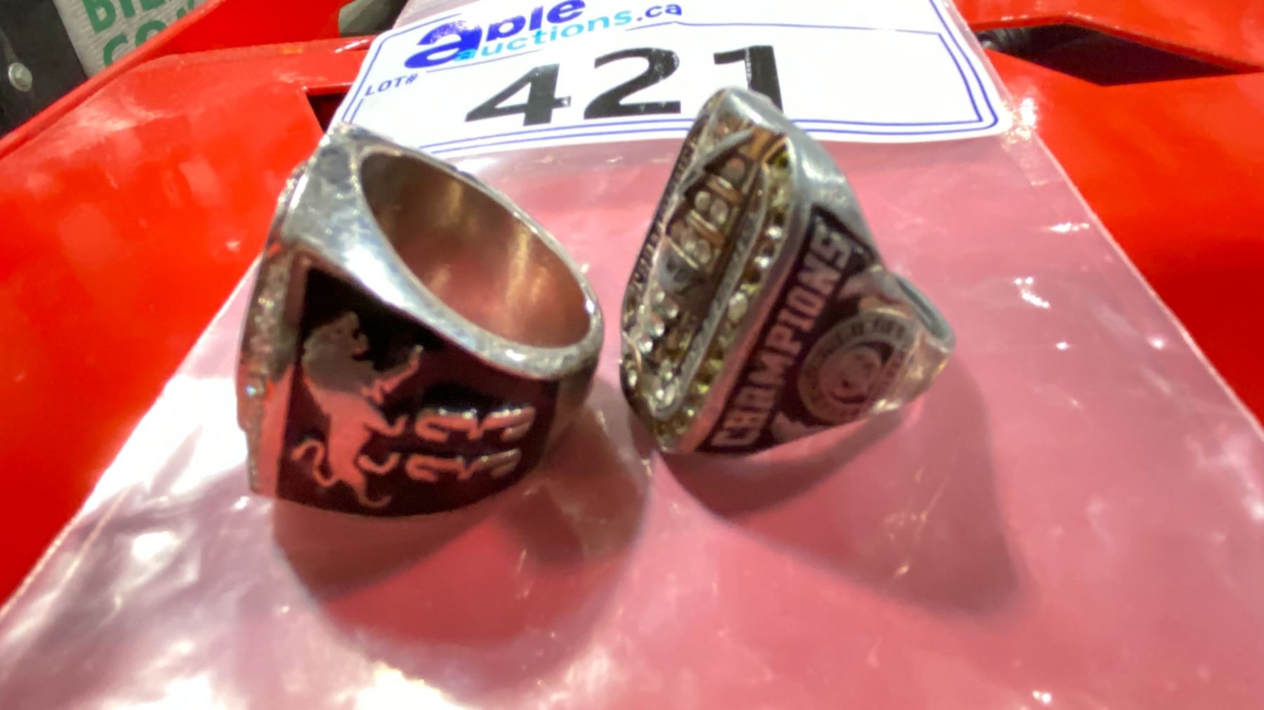 BAG OF MEN'S BOYC CHAMPIONSHIP RING & TAMPA BAY LIGHTNING STANLEY CUP CHAMPIONSHIP RING