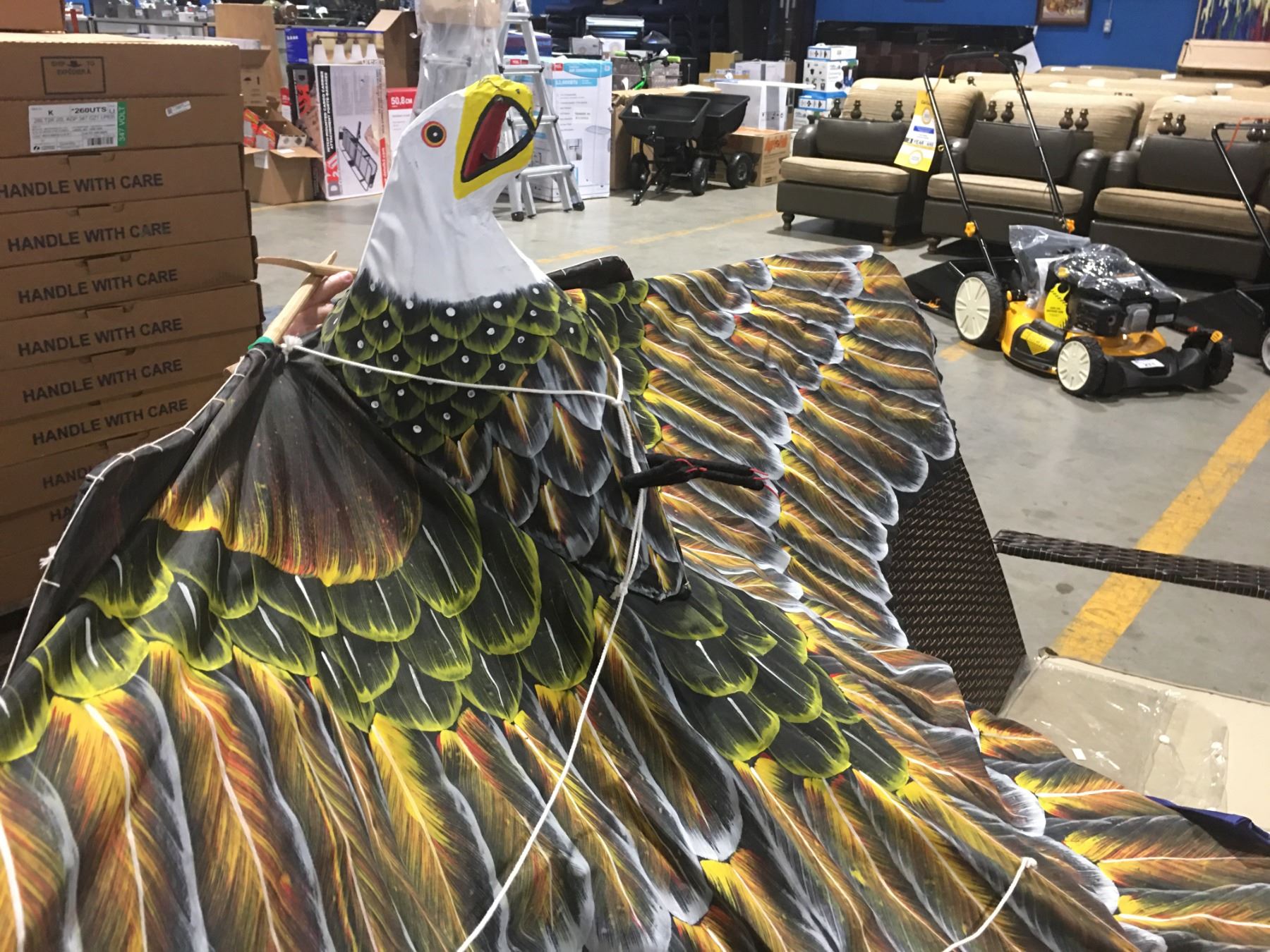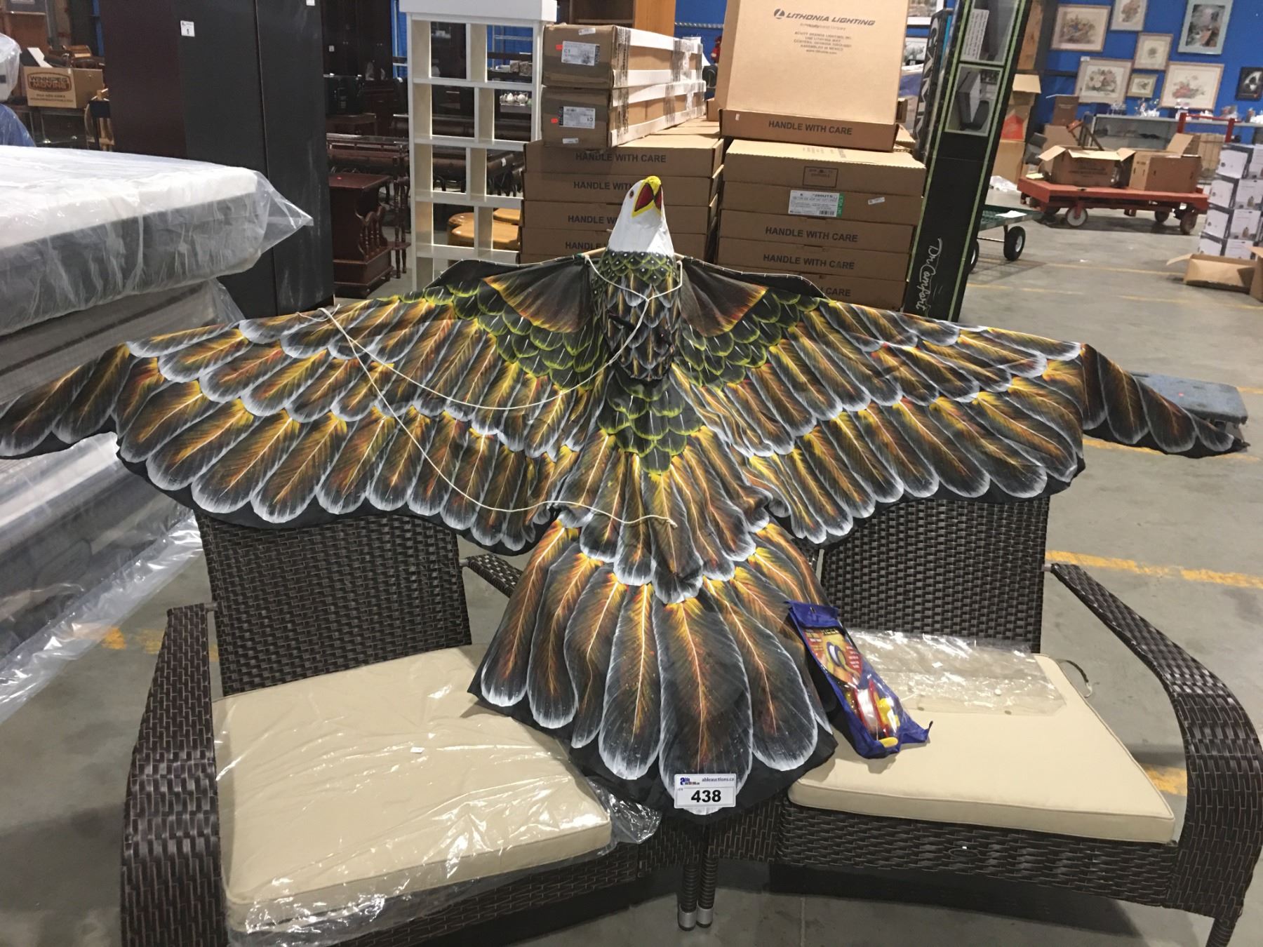BALD EAGLE KITE - APPROX 10' WING SPAN WITH 300' 50LB KITE REEL (THUMB OPERATED) - B