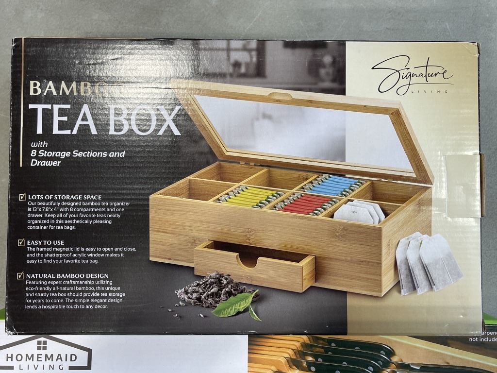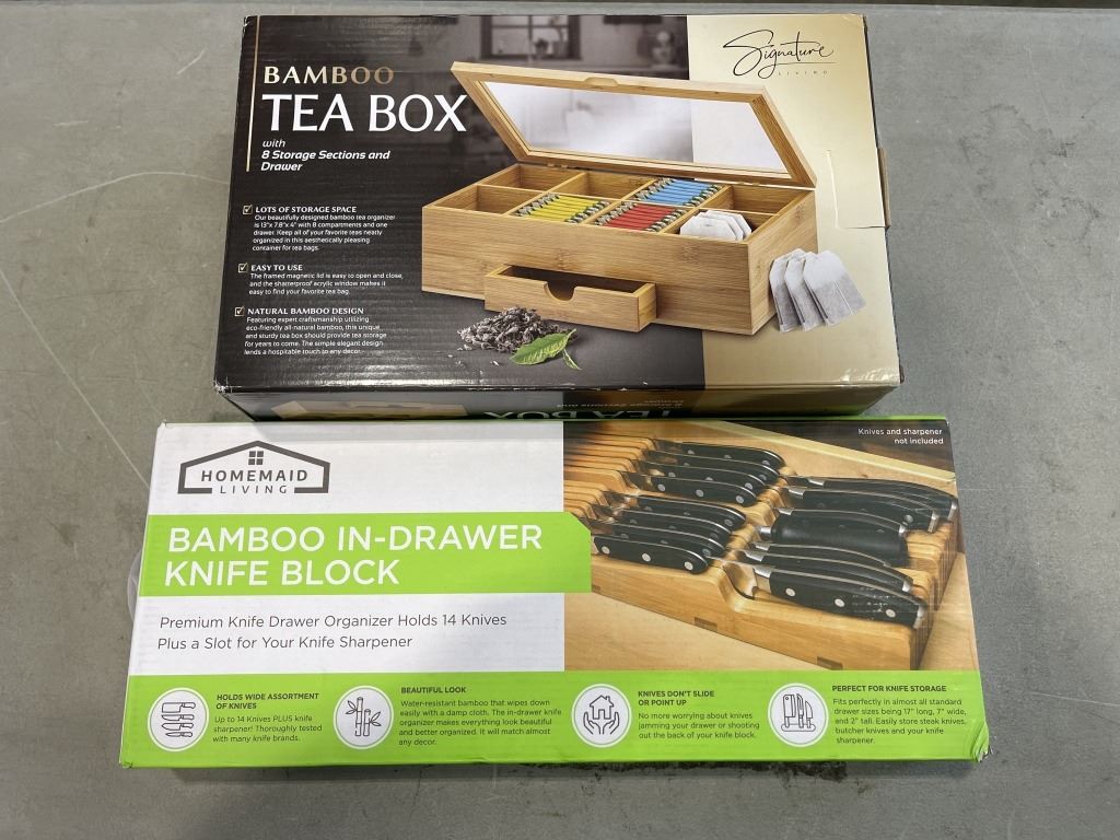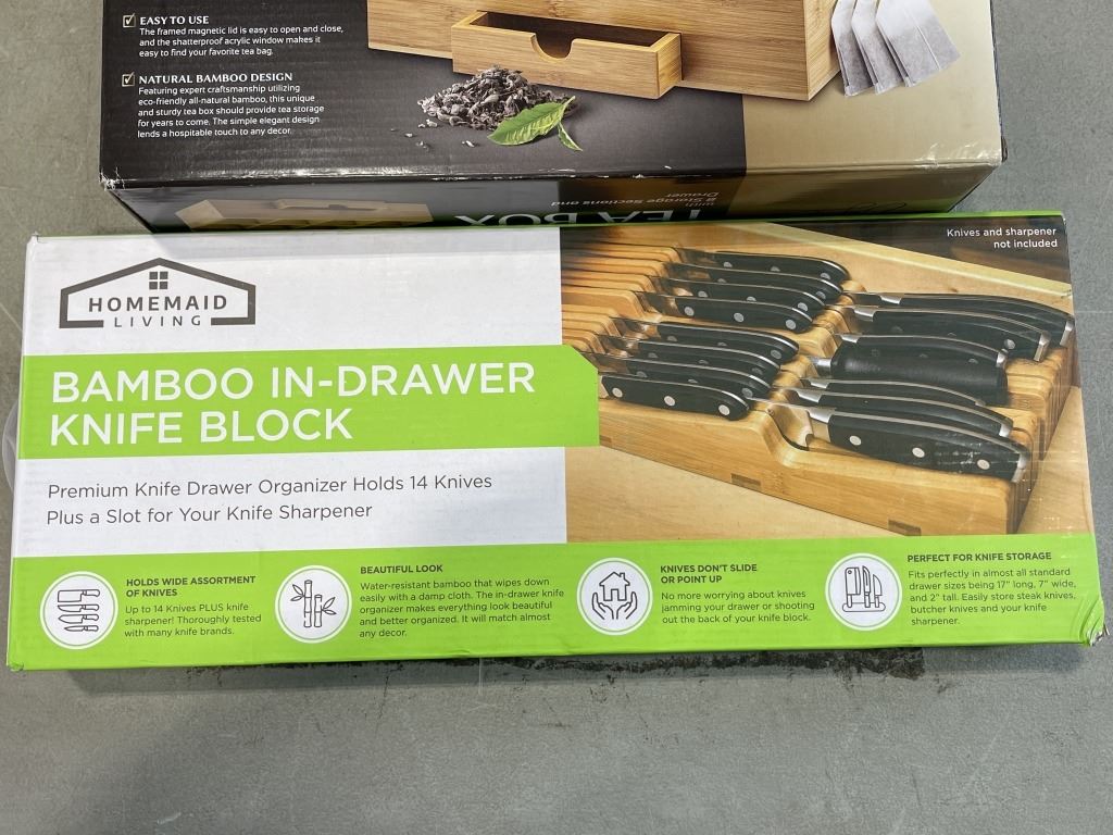 BAMBOO TEA BOX AND IN DRAWER KNIFE BLOCK