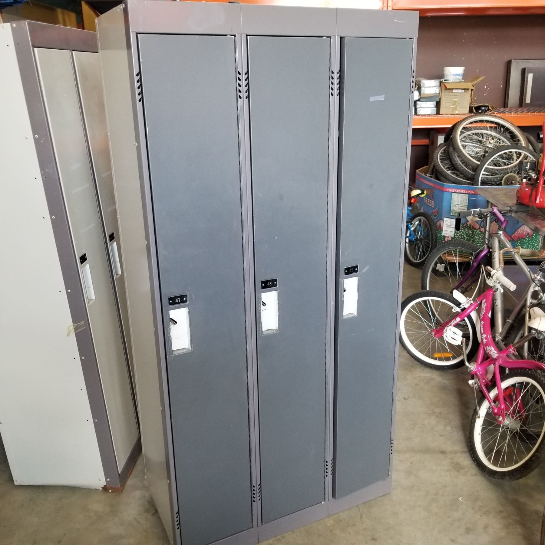 BANK OF 3 LOCKERS 6 FOOT TALL, 3 FOOT WIDE, 18 INCHES DEEP