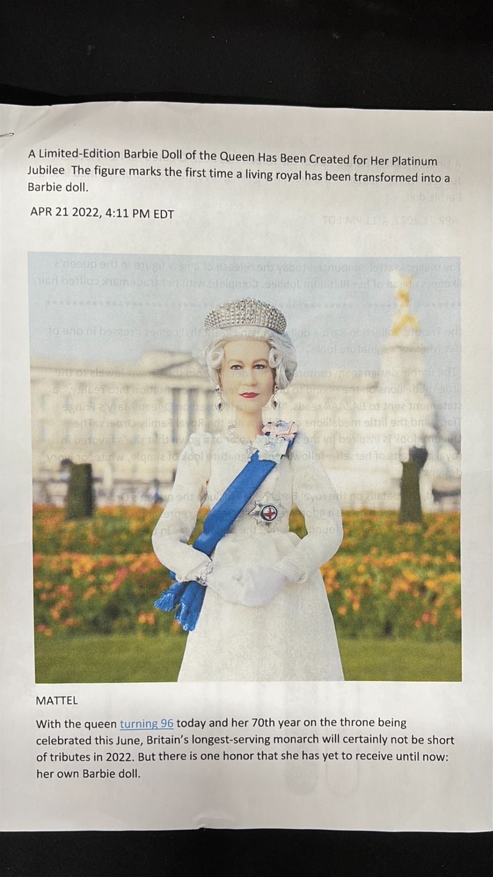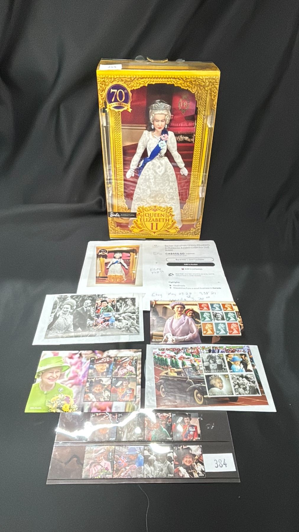 BARBIE SIGNATURE 70TH ANNIVERSARY QUEEN ELIZABETH II PLATINUM JUBILEE 2022 DOLL & ASSORTED QUEEN ELIZABETH II STAMPS