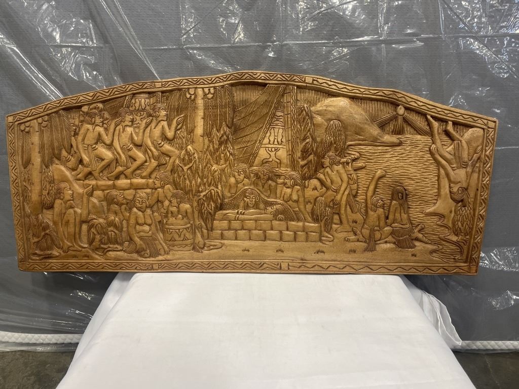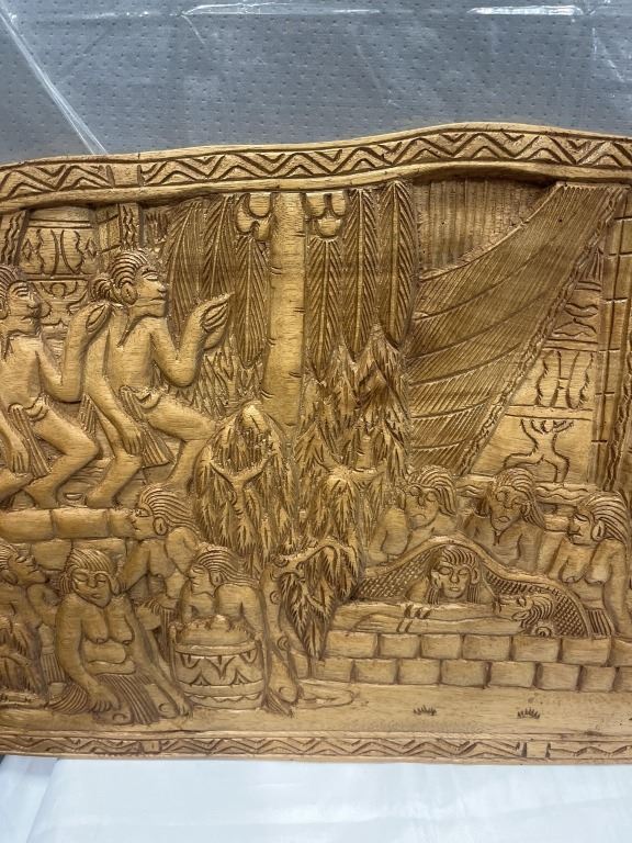 BARIS SYLVESTER RARE ORIGINAL STORY BOARD, WOOD CARVING 'NGIRAMARIAR' WITH DOCUMENTATION ON REAR, GO
