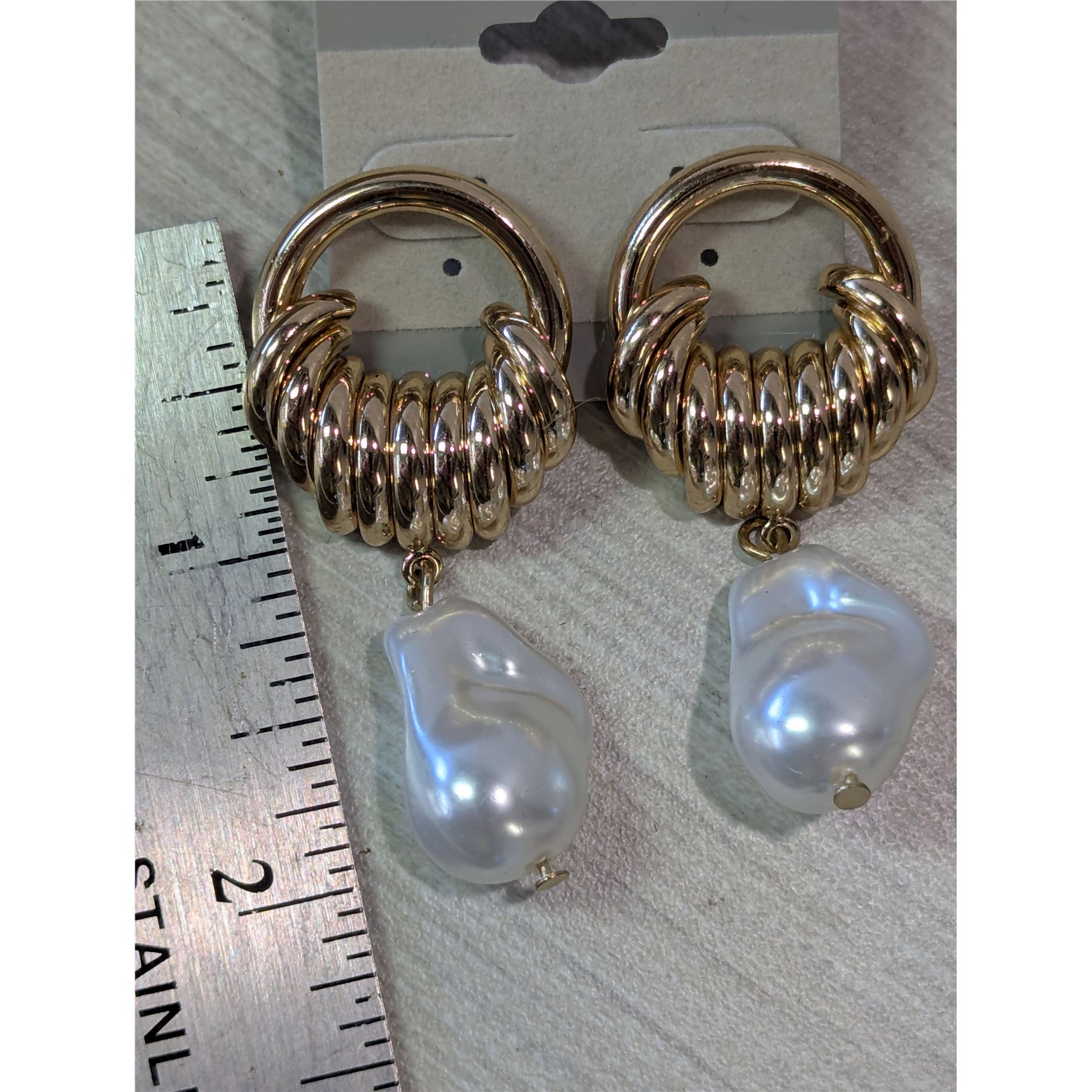BAROQUE PEARL 2" LONG PIERCED EARRINGS