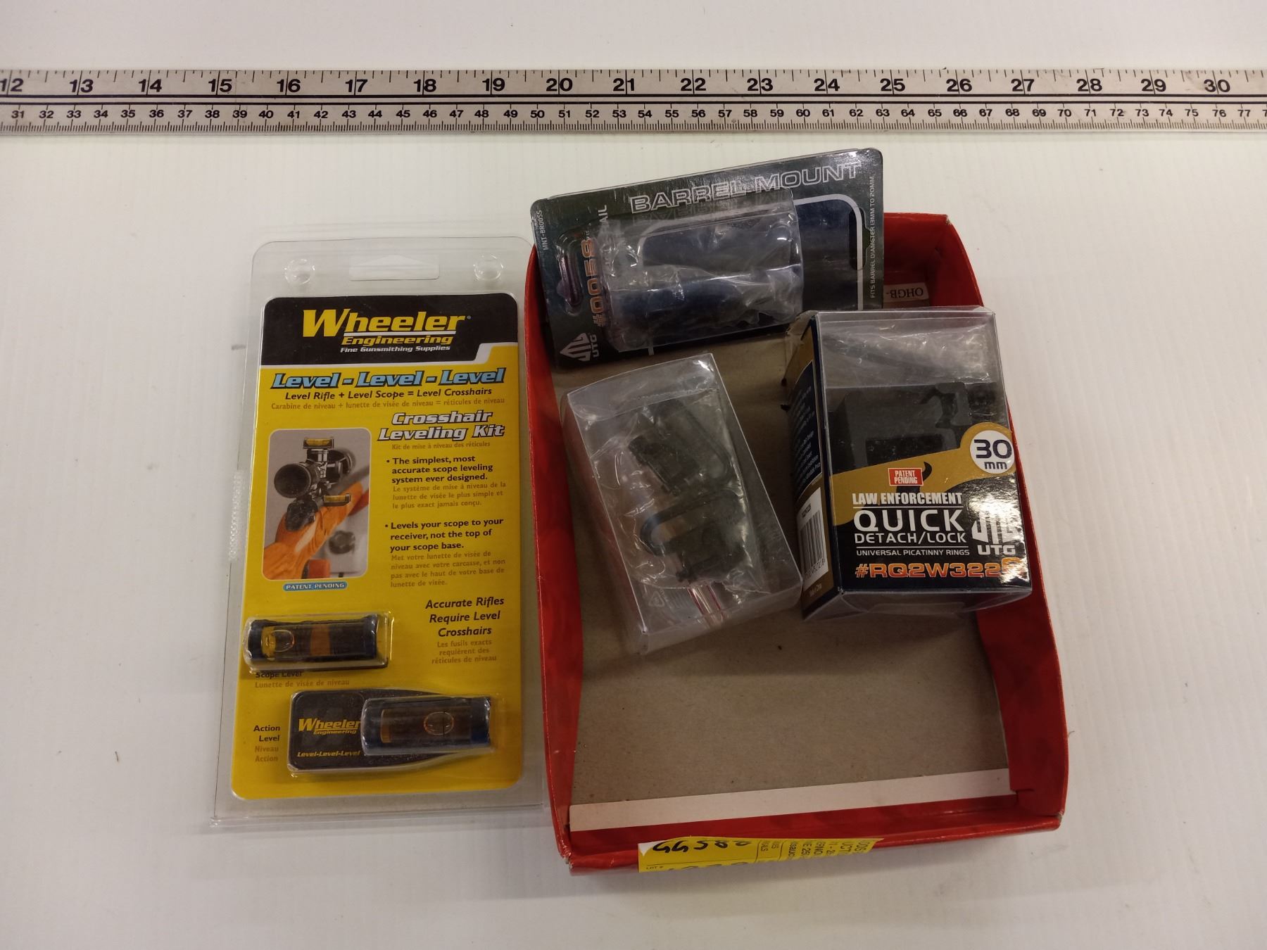 BARREL MOUNT, CROSSHAIR LEVELING KIT, LAW ENFORCEMENT QUICK DETACH LOCK, ETC.
