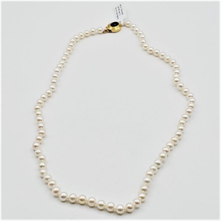 BASE METAL 5.4MM - 5.5MM NATURAL FRESHWATER PEARL & BLACK ONYX PRINCESS NECKLACE, APPROX 77 PEARLS, W/A $630.00