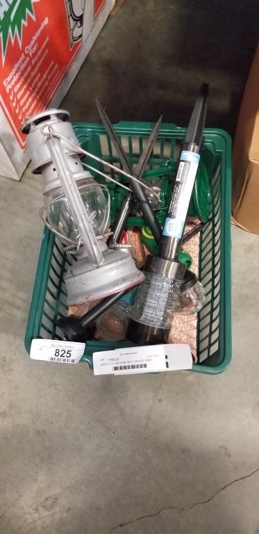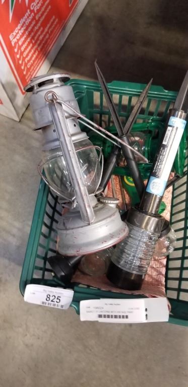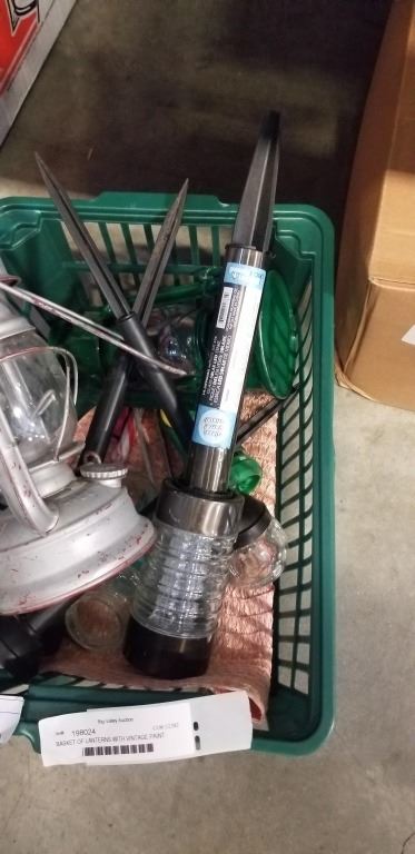 BASKET OF LANTERNS WITH VINTAGE PAINT RACK