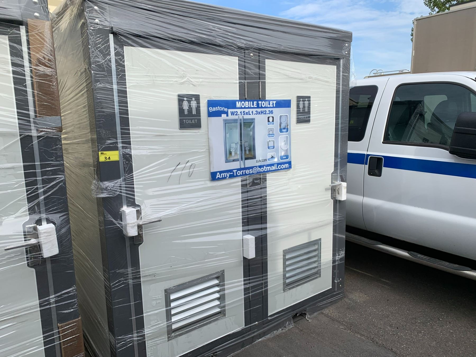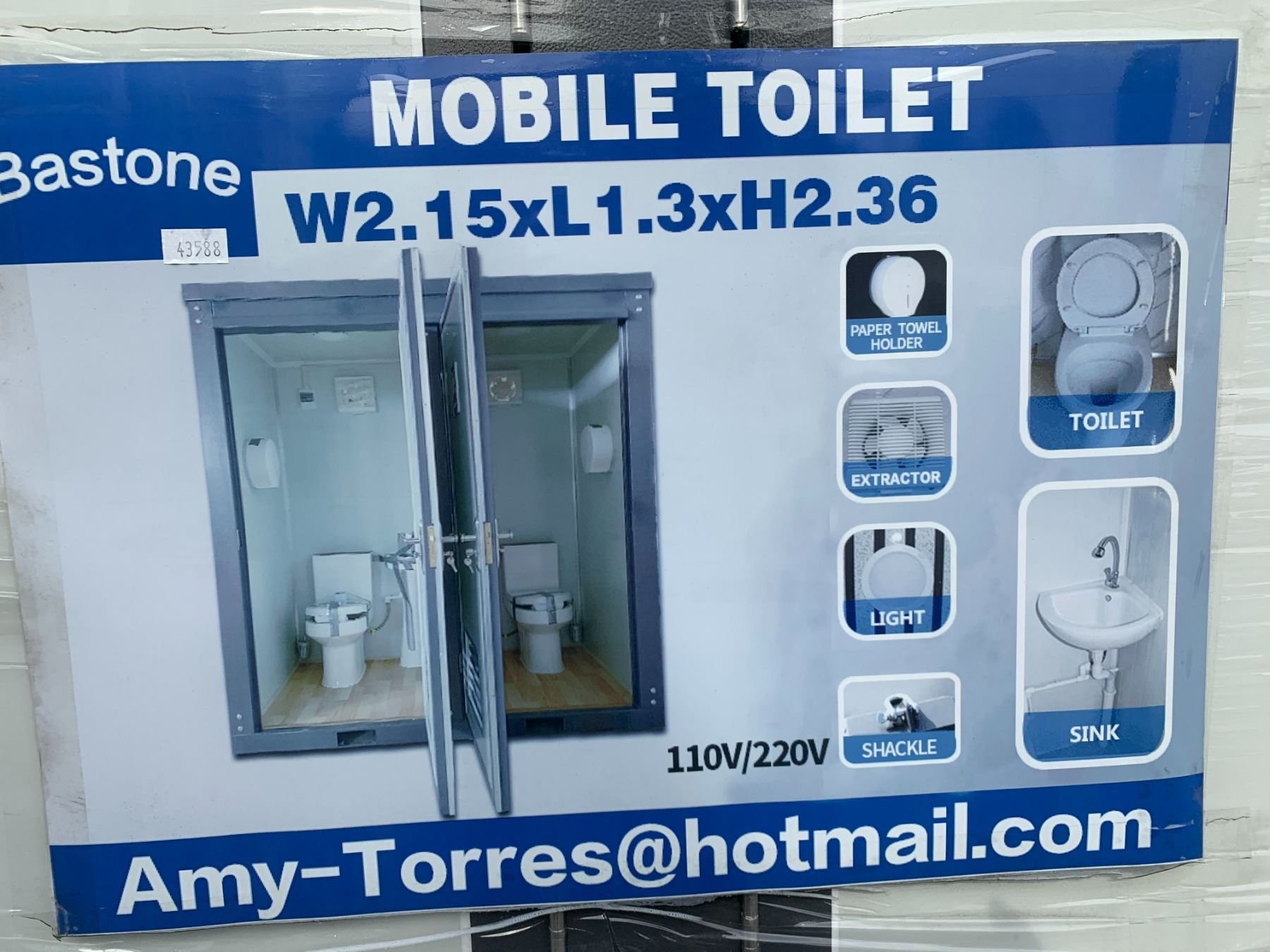 BASTONE LOCKING PORTABLE MOBILE DOUBLE TOILET HOUSE, WITH TWO TOILETS, TWO SINKS,