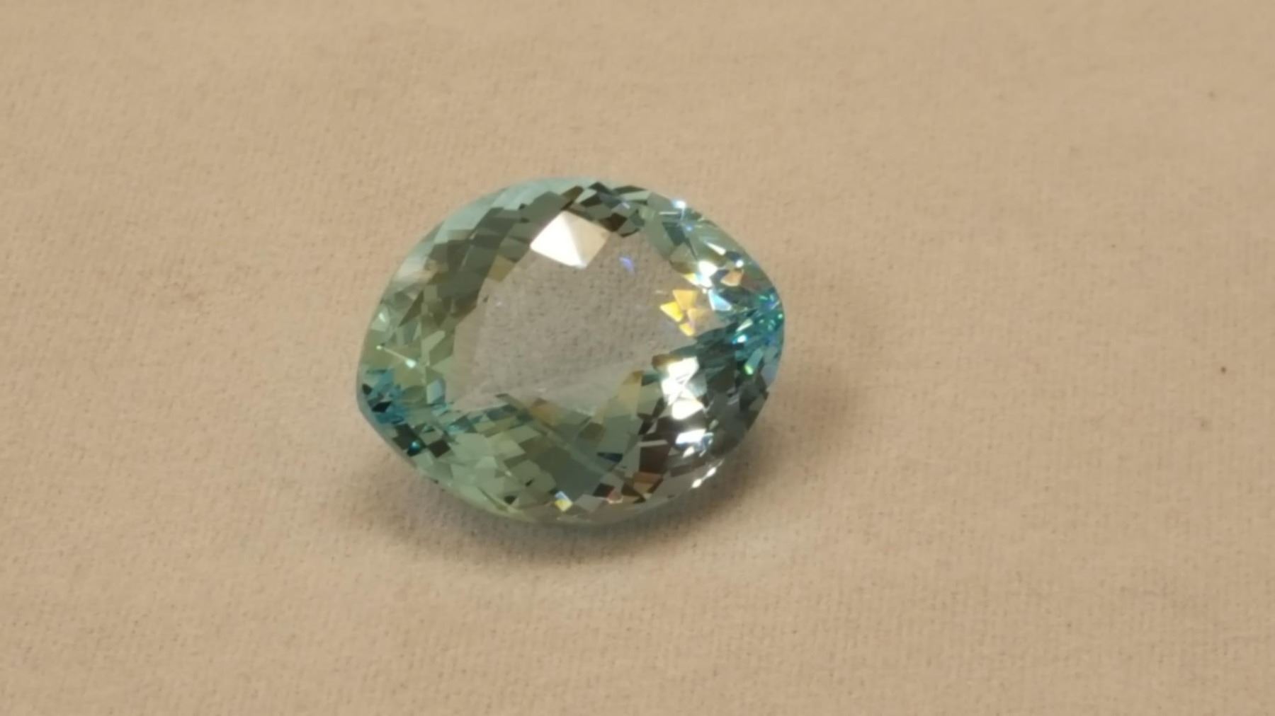 BEAUTIFUL 14.79 CT LIGHT BLUE TOPAZ. FANCY CHECKER BOARD MARQUISE CUT DISLAYING A STRONG EVEN TONE WITH FINE CLARITY.
