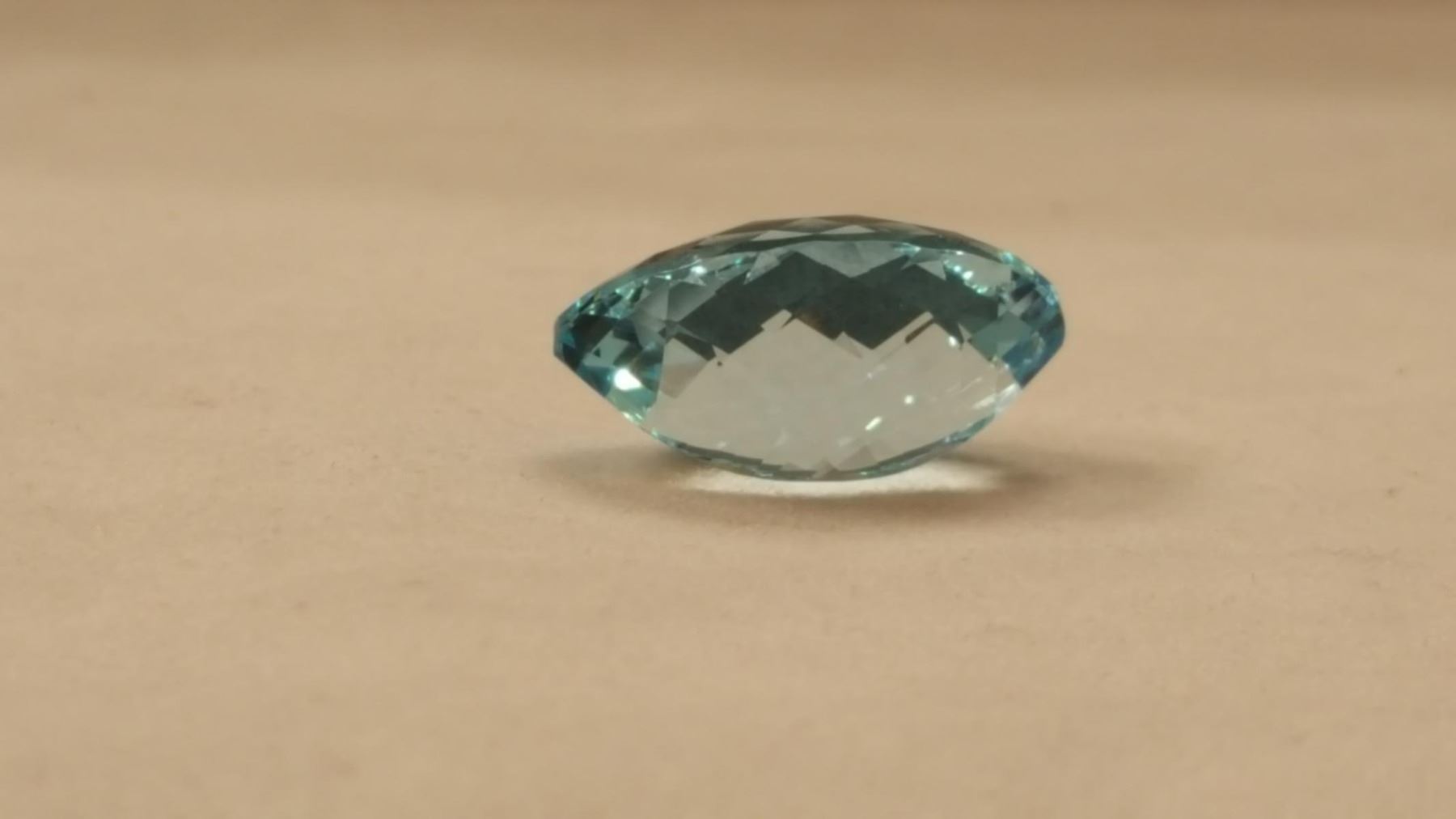 BEAUTIFUL 14.79 CT LIGHT BLUE TOPAZ. FANCY CHECKER BOARD MARQUISE CUT DISLAYING A STRONG EVEN TONE WITH FINE CLARITY.