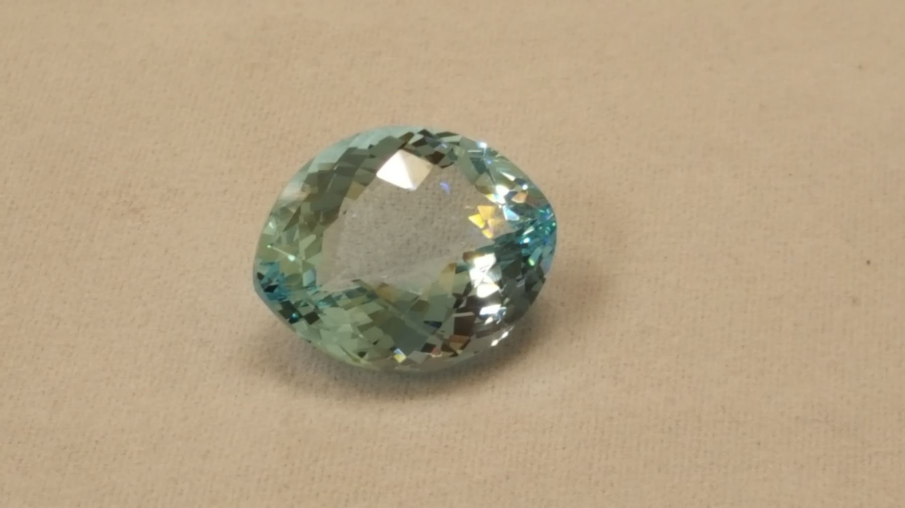 BEAUTIFUL 14.79 CT SWISS BLUE TOPAZ. FANCY CHECKER BOARD MARQUIS CUT DISLAYING A STRONG EVEN TONE WITH FINE CLARITY.
