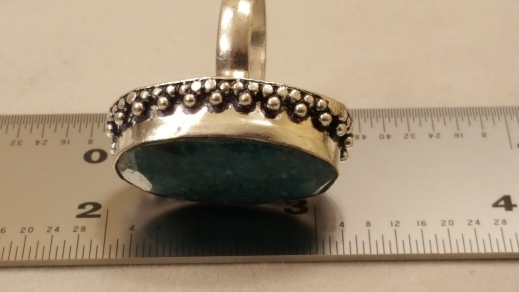 BEAUTIFUL 17 CT EMEARLD GREEN COLOR QUARTZ RING . MOUNTED IN ELABORITE DESIGNED SOLID .925 STERLING SILVER , SIZE 8 1/2 11.4 TOTAL GRAM WT