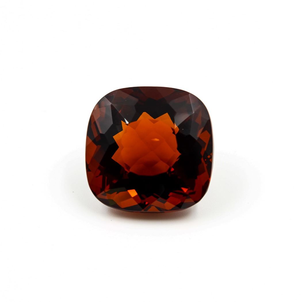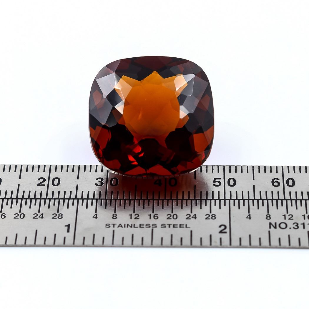 BEAUTIFUL 38.56 CT VVS1 GOLDEN ORANGE MADEIRA CITRINE. This Citrine Is A Near Flawless Cushion cut measuring 21 x 20 x 13.8 mm.The color of Madeira ranges from golden to golden-orange to reddish-brown to brown.Perfect for a pendant or just to admire .Treated.