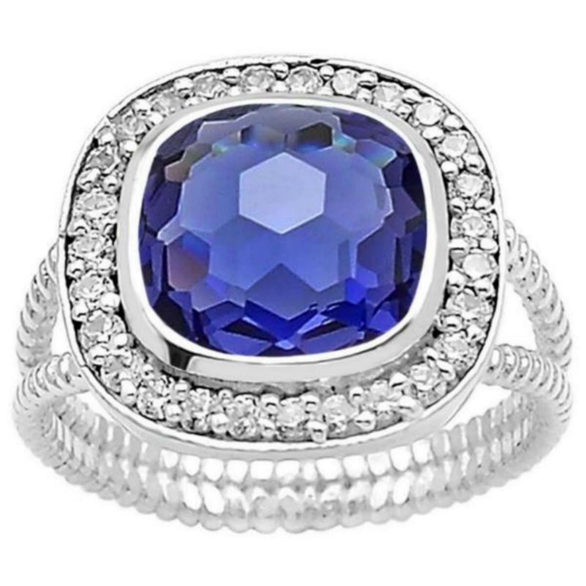 BEAUTIFUL 4.7 CT VIOLET BLUE TANZANITE RING. THIS LAB CREATED TANZANITE IS EYE CLEAN MOUNTED IN SOLID .925 STERLING SILVER. CUSHION CUT. SIZE 7 1/2 . GRAM TOTAL WT IS 5.2 TOTAL GRAMS