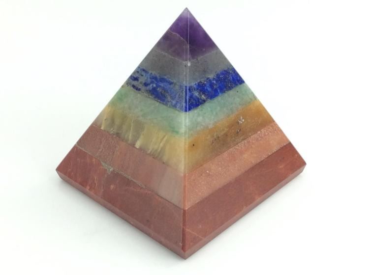AMAZINGILY BEAUTIFUL 461.5 CT 7 MULTI GEM CHAKRA HEALING PYRAMID. THIS CHAKRA PYRAMID BASE IS 45 x 45mm AND STANDS 50 mm.. HIGH. It is said that pyramids can amplify and then tightly focus energy through the apex. The chakra power pyramid is a tool which can easily be used to draw off negative energy and blockage from each of the individual Chakras. To use it, simply point the apex of the pyramid towards each of the chakras for 30 seconds or longer if you feel the need. Close your eyes and attune yourself to the chakra area. Feel the clearing sensation, similar to a freshness in each of the regions as you move from chakra to chakra. The sensation of stagnation will slowly lift in each of the chakras.