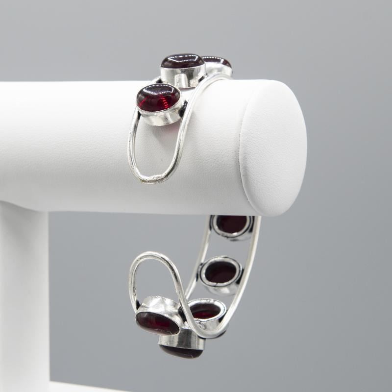 BEAUTIFUL 81 CT 8 STONE RUBY CUFF BRACLET. THESE LAB CREATED RUBIES ARE MOUNTED IN ELABRATELY DESIGNED .925 STERLING SILVER OVERLAY.TOTAL GRAM WEIGHT IS 46.1 GRAMS. . ADJUSTABLE SO WILL FIT MOST EVERYBODY.ABOSOLUTELY STUNNING