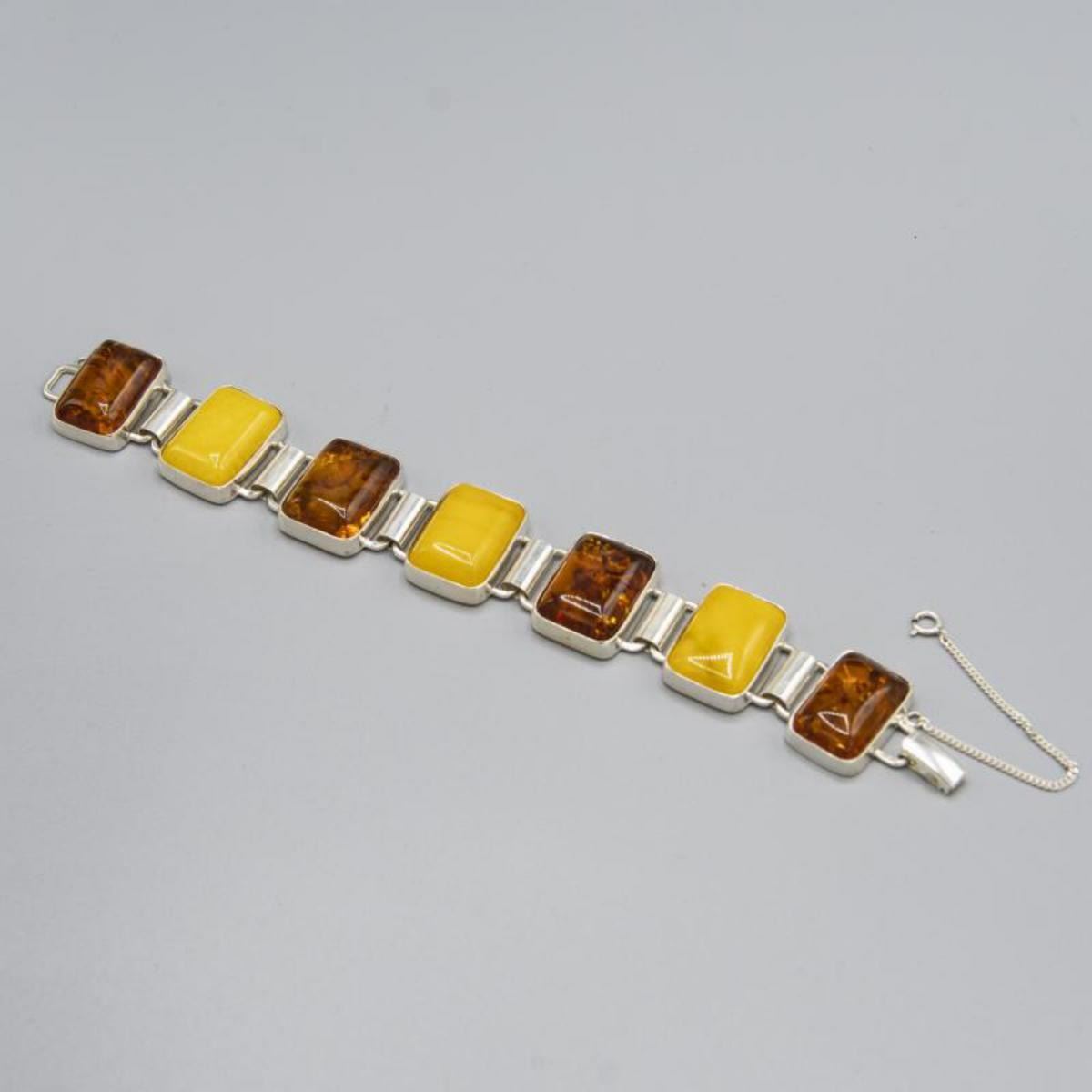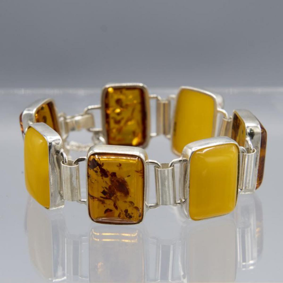 BEAUTIFUL 84 CT 7 STONE AMBER BRACELET. Mounted In Stamped .925 Sterling Sterling Silver.Approx 7 to 8 " Long. Cttw, Is 199.5 or 40 Gram Total Weight.So Lovely and Unique. Get Ready For The Compliments On This Piece!