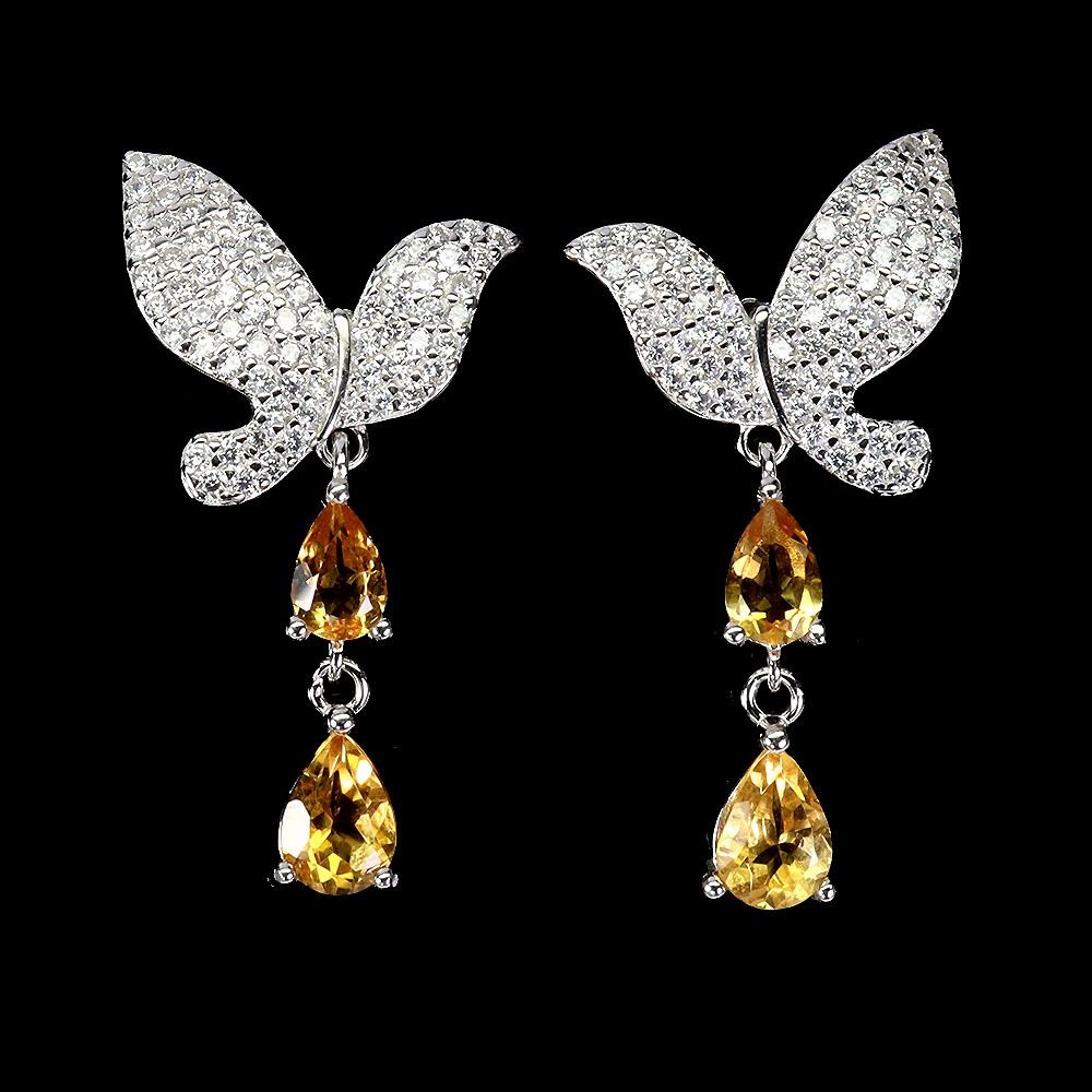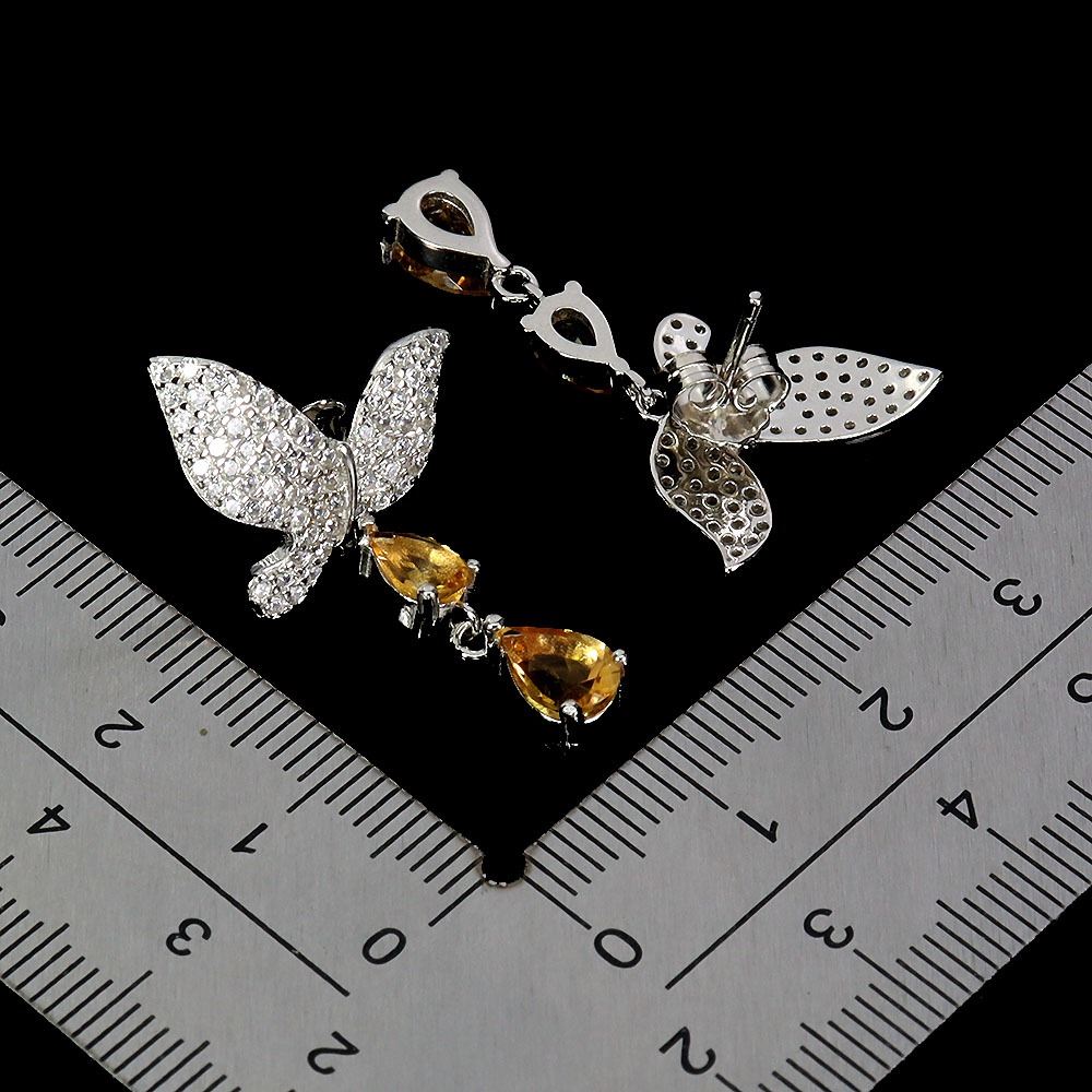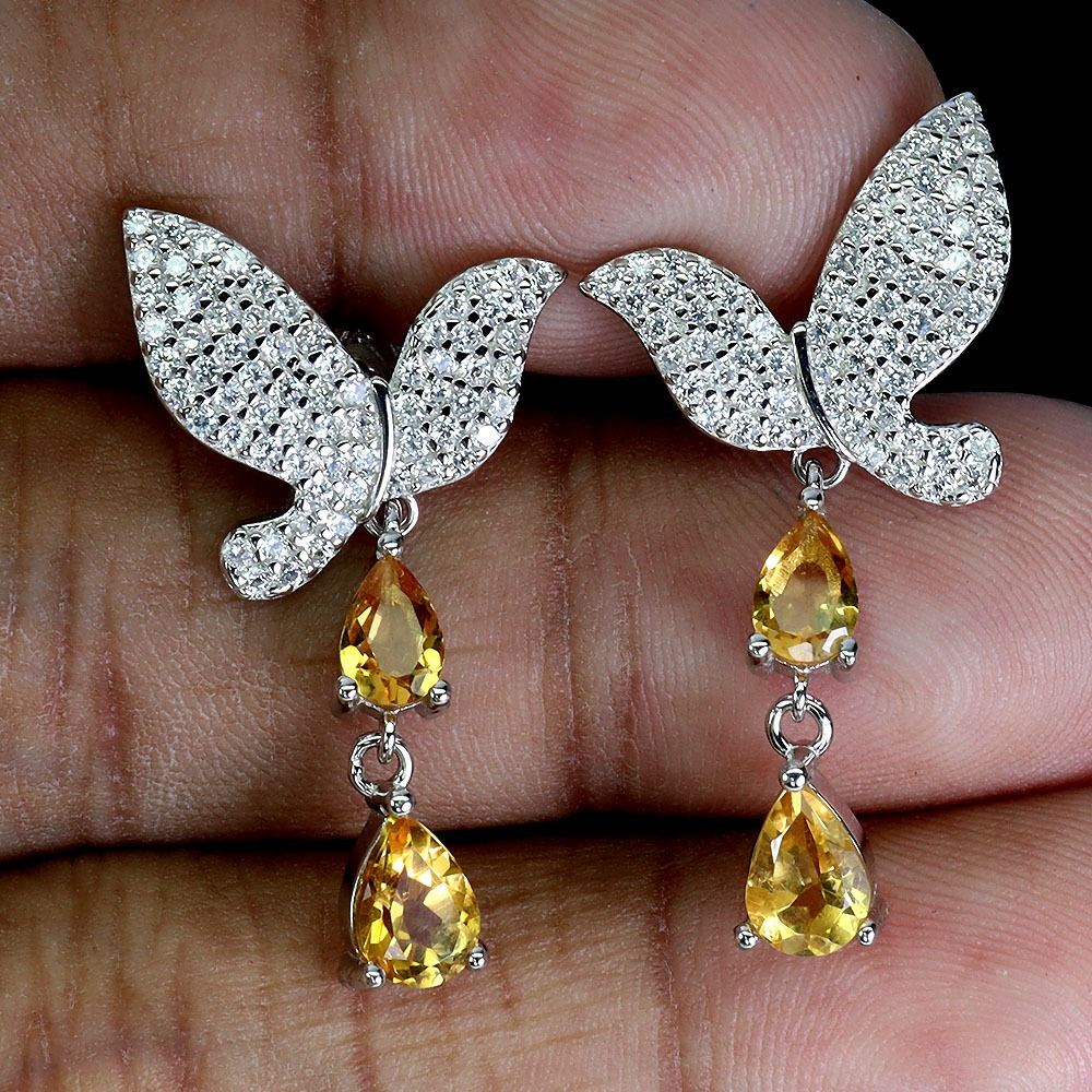 BEAUTIFUL BUTTERFLY CITRINE EARRINGS IN 14K WHITE PLATED GOLD OVER 925 STERLING SILVER - APPRAISED REPLACEMENT VALUE CAD 480