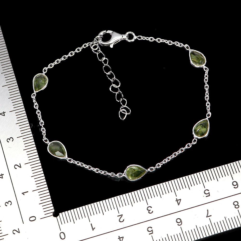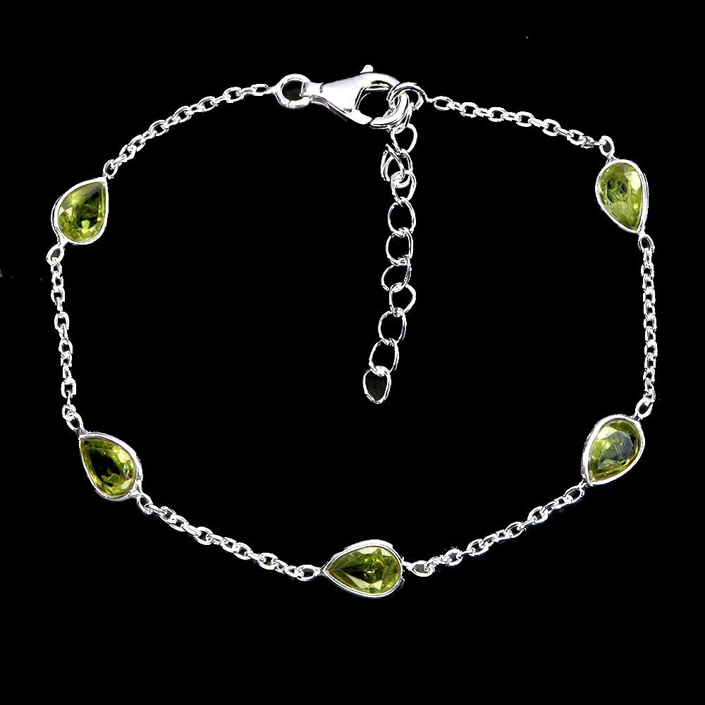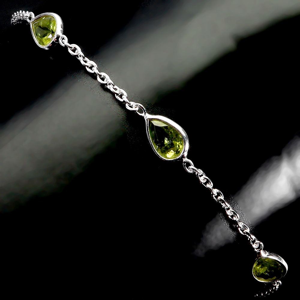 BEAUTIFUL PERIDOT BRACELET IN 14K WHITE PLATED GOLD OVER 925 STERLING SILVER - 7 INCHES LONG - APPRAISED REPLACEMENT VALUE $ 450