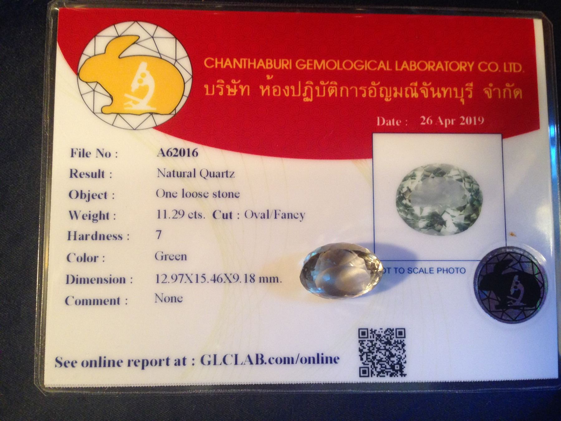 BEAUTIFUL RARE UNHEATED/ UNTREATED VVS1 CERTIFIED URUGUAY GREEN AMETHYST / PRASIOLITE.11.29 CTS. EYE CLEAN. FINE OVAL CUT MEASURING 12.97 x 15.46 x 9.18 mm. PLEASE SEE CERTIFICATION FOR FURTHER DETAILS. READY TO MOUNT. DON'T MISS OUT ON THIS RSARE NATURAL BEAUTY !