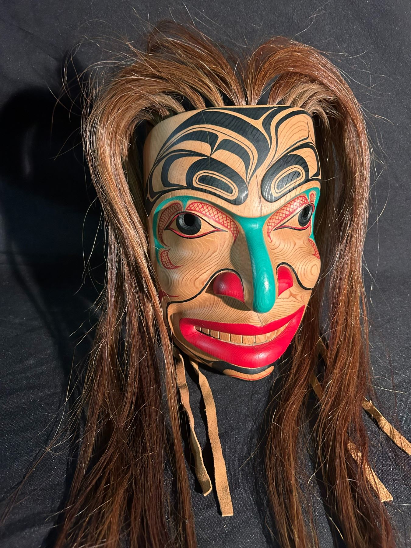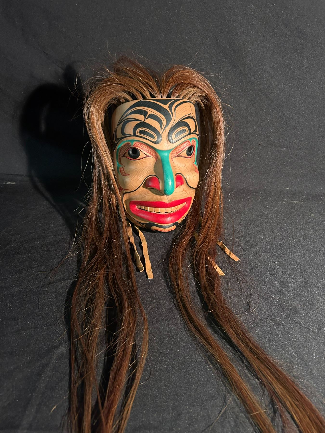 BEAUTIFULLY CARVED AND PAINTED PORTRAIT MASK BY XUUJ STAANG (BEAR PAW) MASK MEASURES 9.5" X 7"
