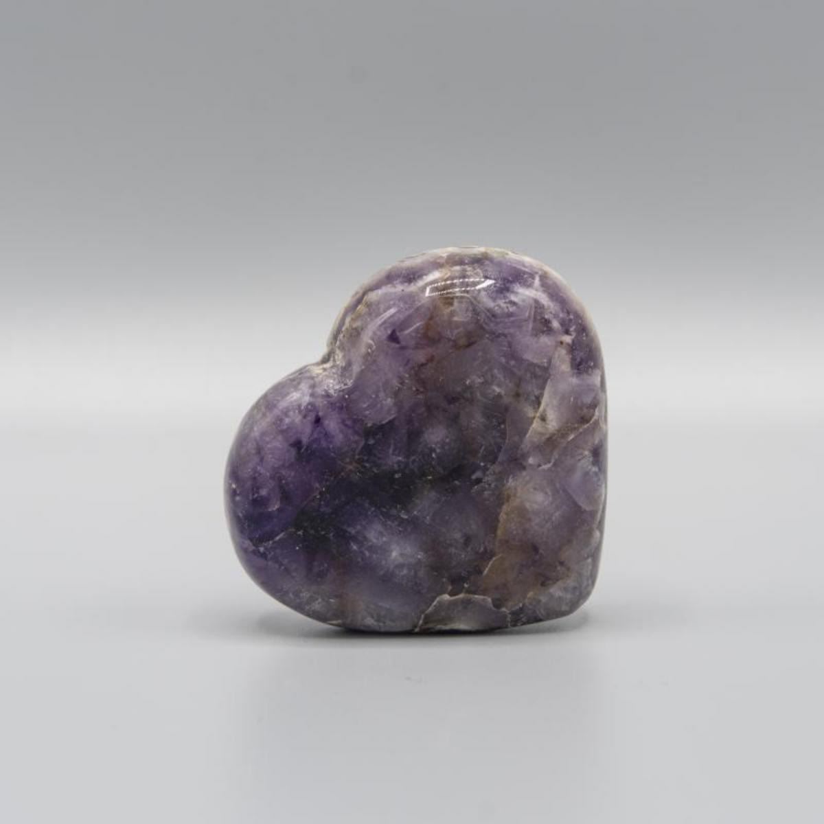 BEAUTUIFUL 554 CT NATURAL AMETHYST HAND CARVED HEART. EXHIBITING A HIGH POLISH AND VIVID HUE. MEASURES APPROX 2 1/2 x 2 " .