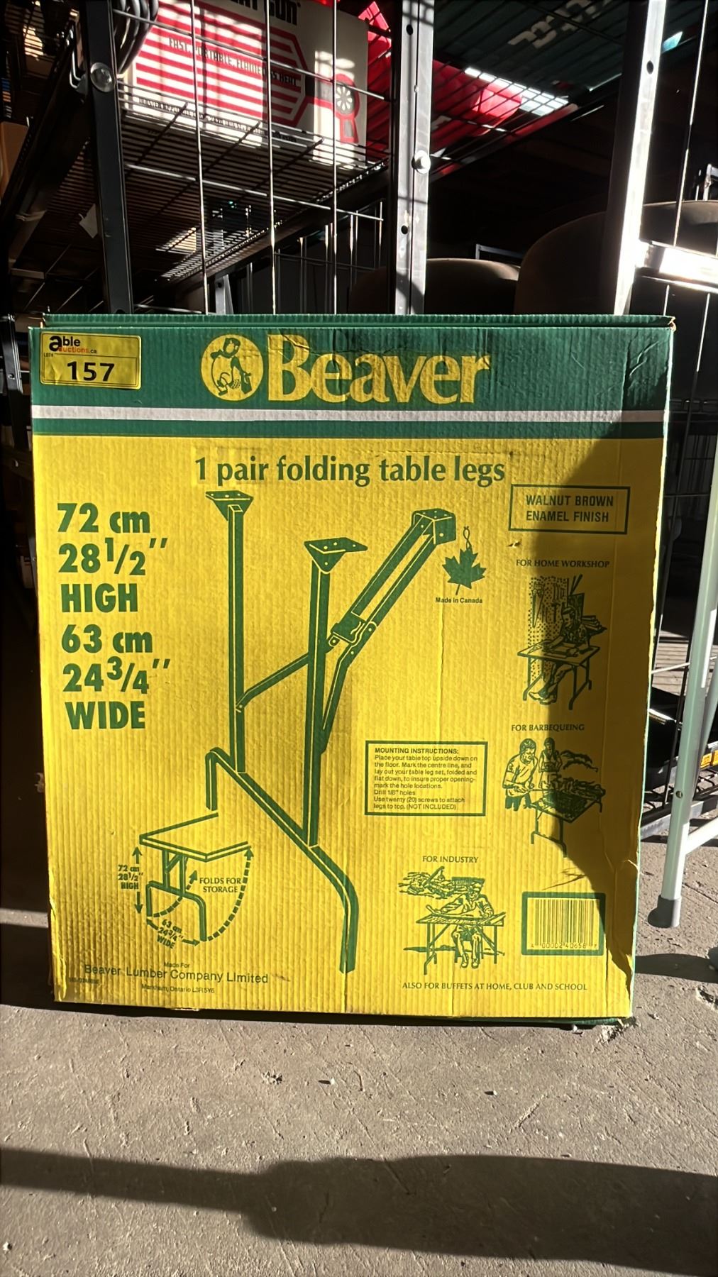 BEAVER 1 PAIR FOLDING TABLE LEGS IN A WALNUT BROWN ENAMEL FINISH