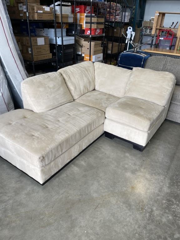 BEIGE CHAISE SOFA W/ SLIPPER CHAIR