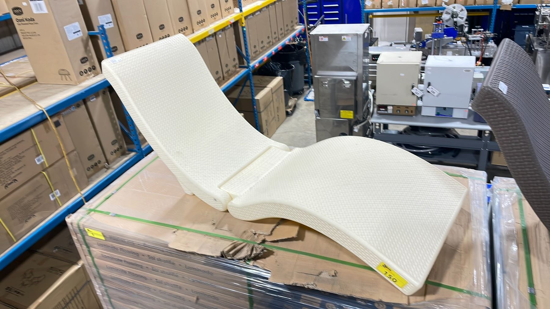 BEIGE FOLDING PLASTIC OUTDOOR PORTABLE BEACH LOUNGER
