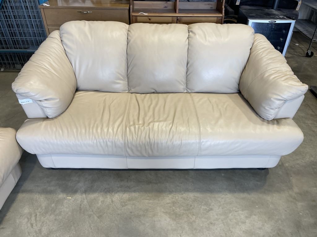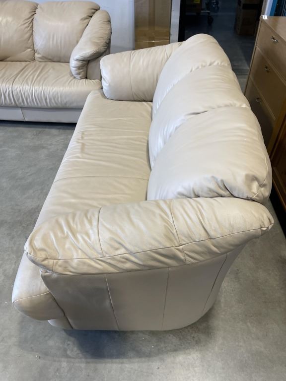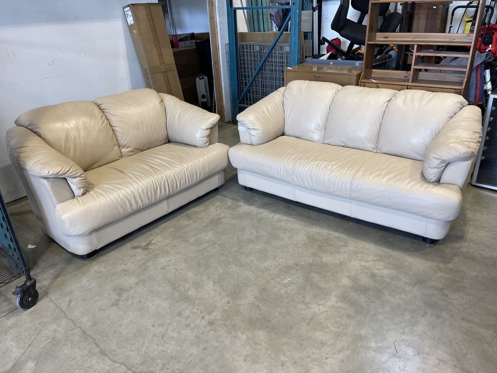 BEIGE LEATHER SOFA AND LOVESEAT, VERY CLEAN, NO RIPS OR TEARS, GOOD OVERALL CONDITION