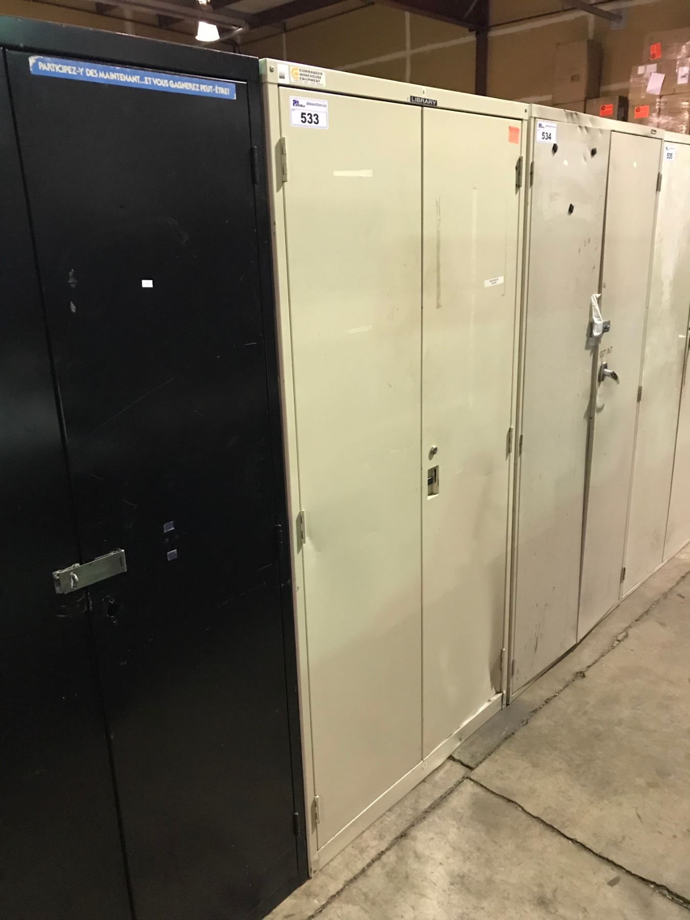 BEIGE METAL 2 DOOR LIBRARY CABINET