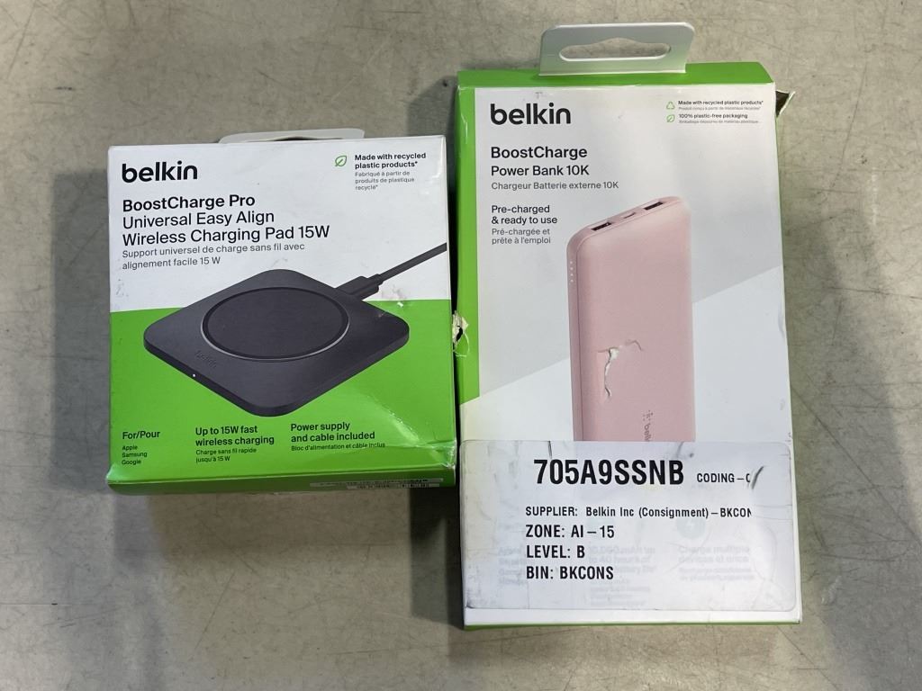 BELKIN BOOSTCHARGE PRO UNIVERSAL EASY ALIGN WIRELESS CHARGING PAD 15W, AND BELKIN BOOSTCHARGE POWER BANK 10K