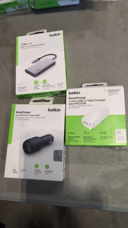 BELKIN CONNECT USB-C 4 IN 1 MULTIPORT ADAPTER, BOOSTCHARGE 3 PORT USB-C WALL CHARGER WITH PPS 67W, AND DUAL USB-C CAR CHARGER