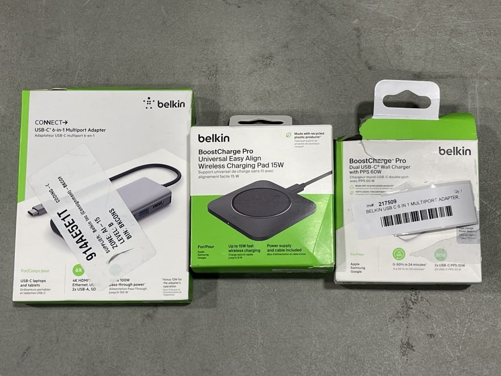 BELKIN USB C 6 IN 1 MULTIPORT ADAPTER, 15W WIRELESS CHARGING PAD AND DUAL USB C WALL ADAPTER WITH PPS 60W