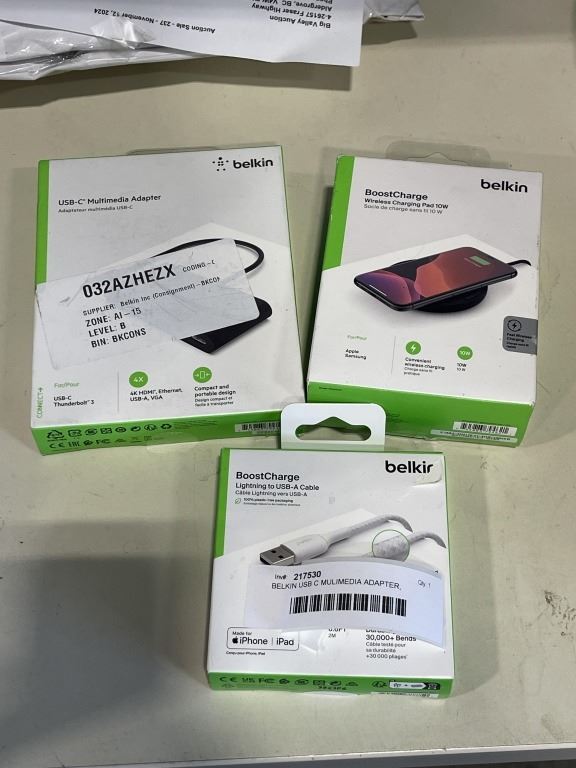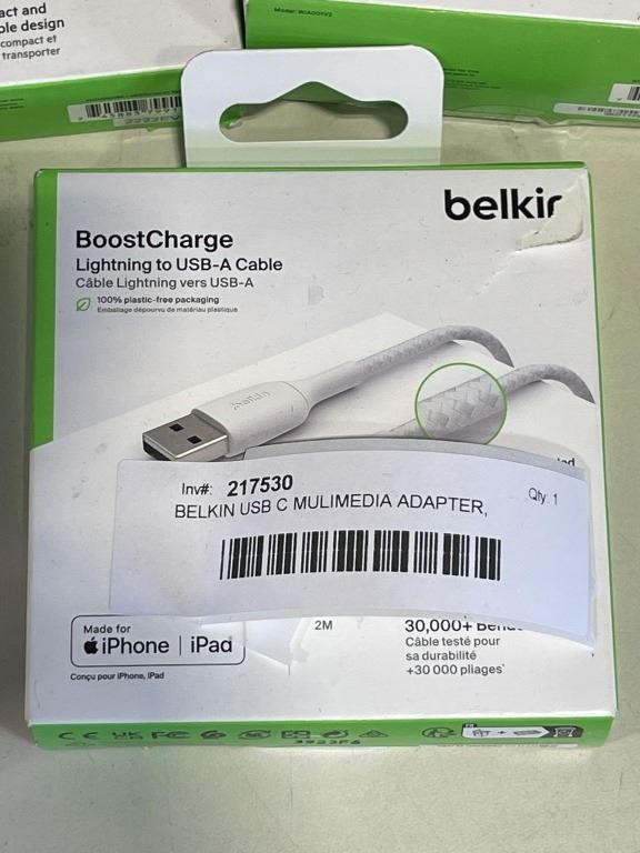 BELKIN USB C MULIMEDIA ADAPTER, WIRELESS CHARGING PAD 10W AND USB A TO USB C CABLE