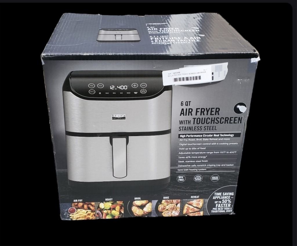 BELLA PRO 8QT TOUCH SCREEN AIR FRYER - TESTED WORKING - RETAIL $239