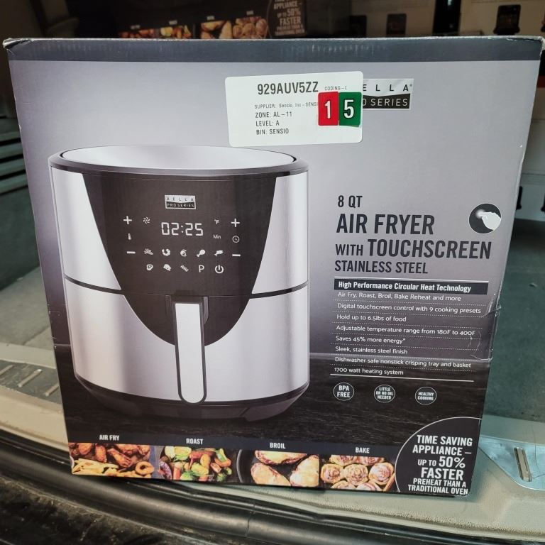 BELLA PRO SERIES AIR FRYER WITH TOUCHSCREEN STAINLESS STEEL TESTED AND WORKING RETAIL $