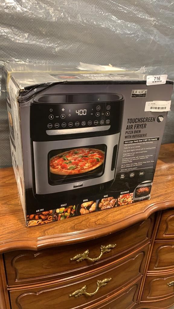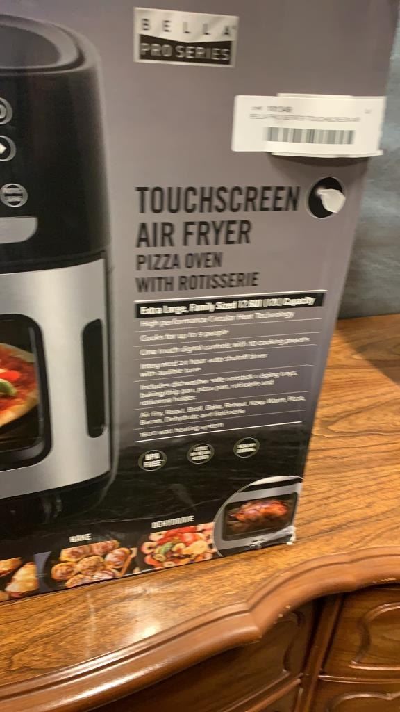 BELLA PRO SERIES TOUCHSCREEN AIR FRYER PIZA OVEN WITH ROTISSERIE - TESTED WORKING, RETAIL $299
