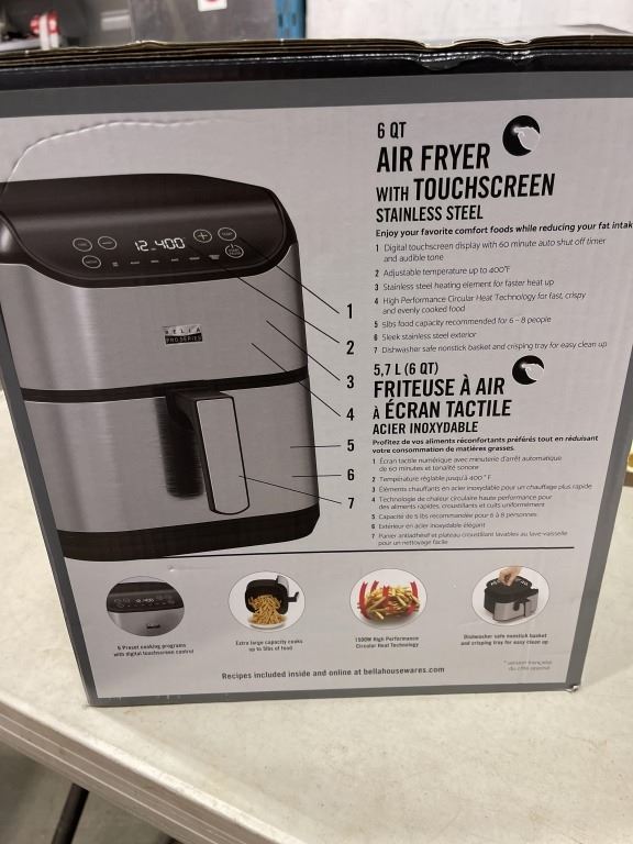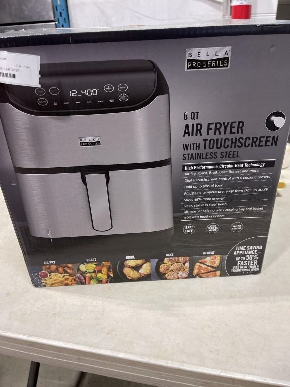 BELLAPRO 5.7L TOUCHSCREEN AIR FRYER - TESTED WORKING, RETAIL $219
