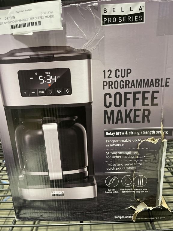 BELLAPRO PROGRAMMABLE DRIP COFFEE MAKER 12-CUP - TESTED WORKING, RETAIL $99