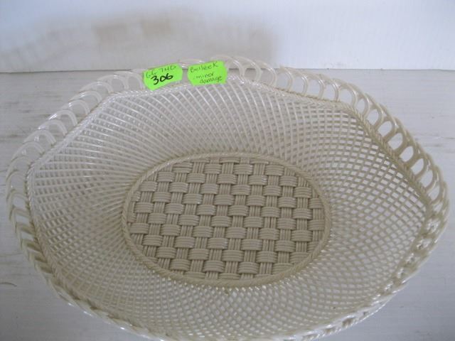 BELLEEK BASKET BOWL, MINOR DAMAGE
