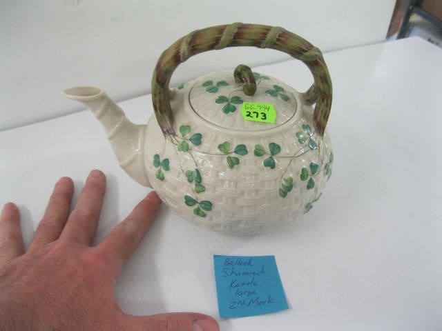 BELLEEK SHAMROCK KETTLE, LG, 2ND MARK