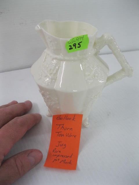 BELLEEK THORN TEAWARE JUG, RARE, IMPRESSED, 1ST MARK