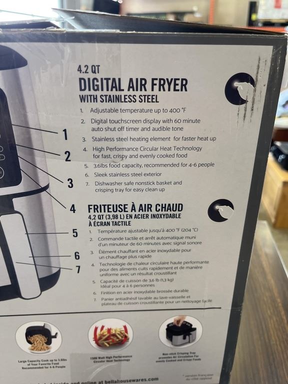 BELLPRO 4.2QT AIR FRYER - TESTED WORKING, RETAIL $199