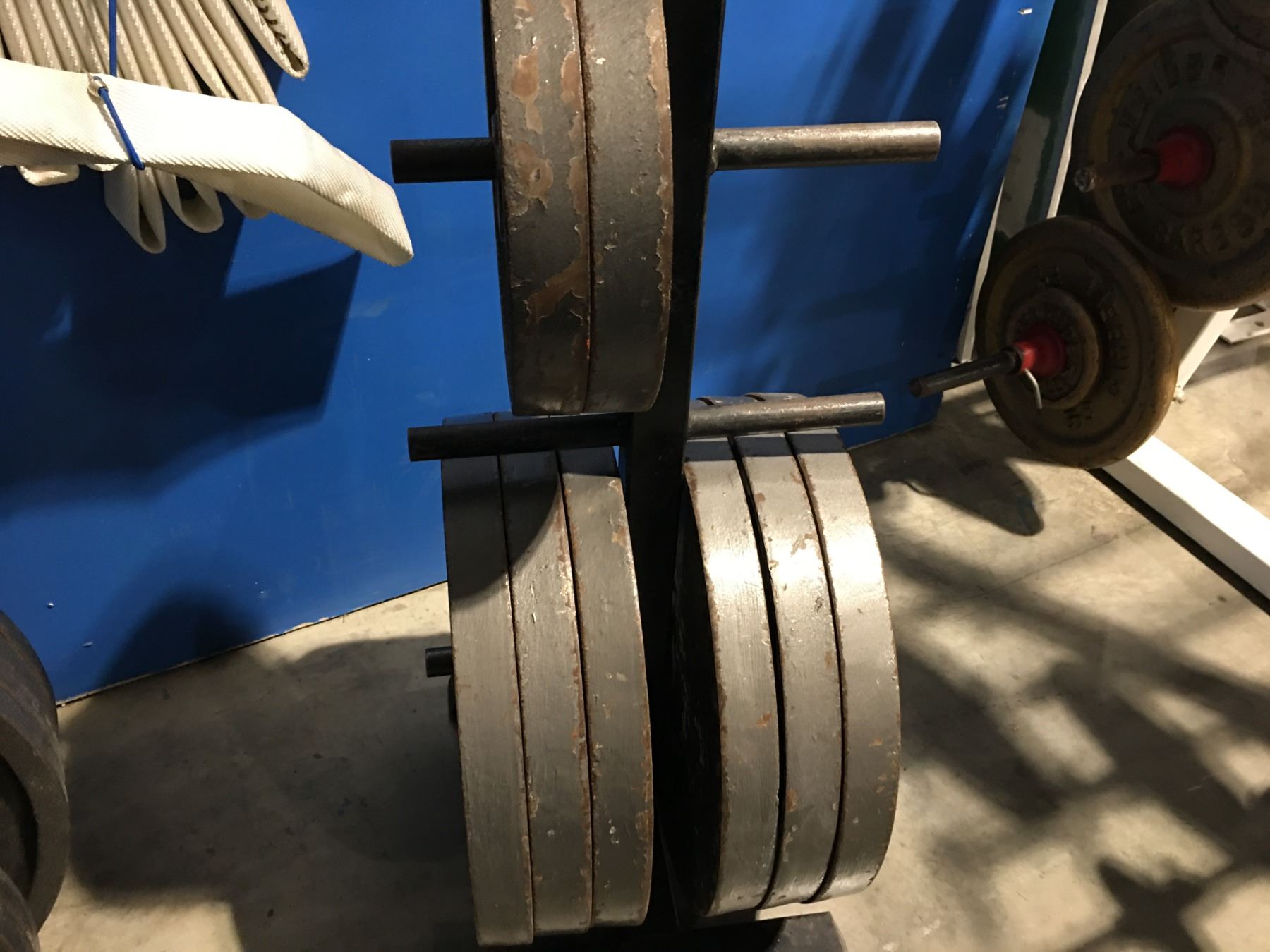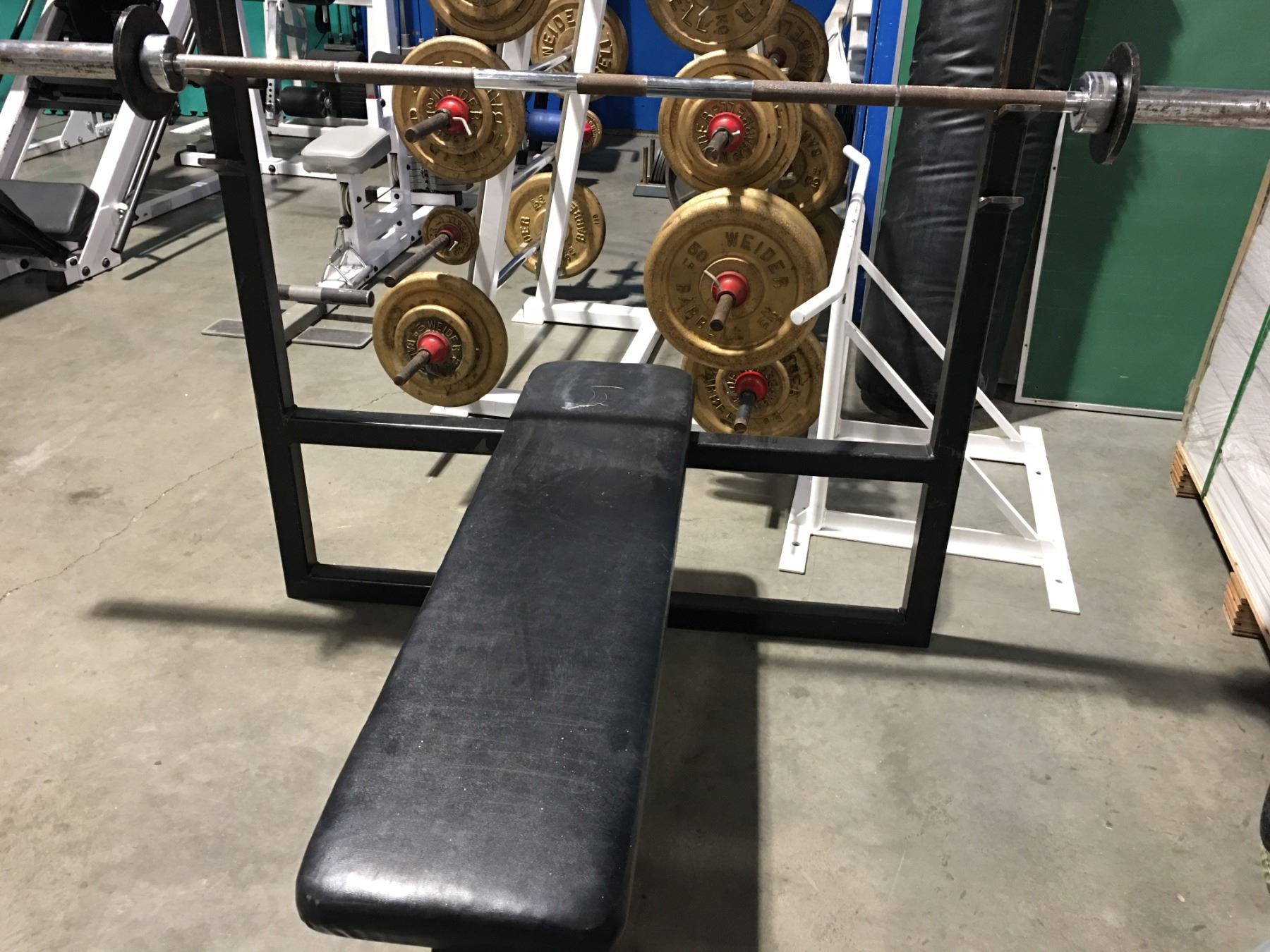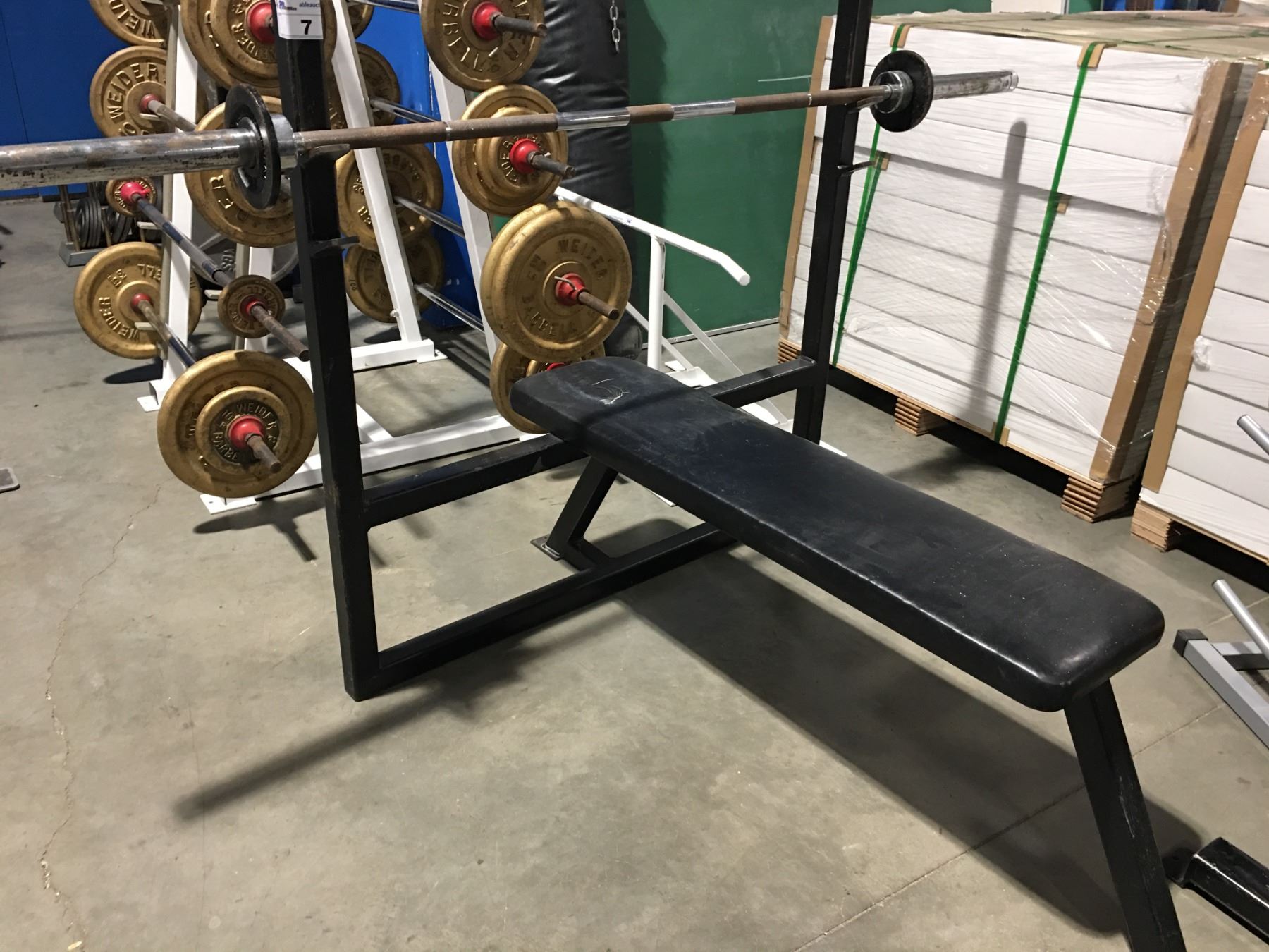 BENCH PRESS C/W BAR & APPROX 320 LBS OF WEIGHTS