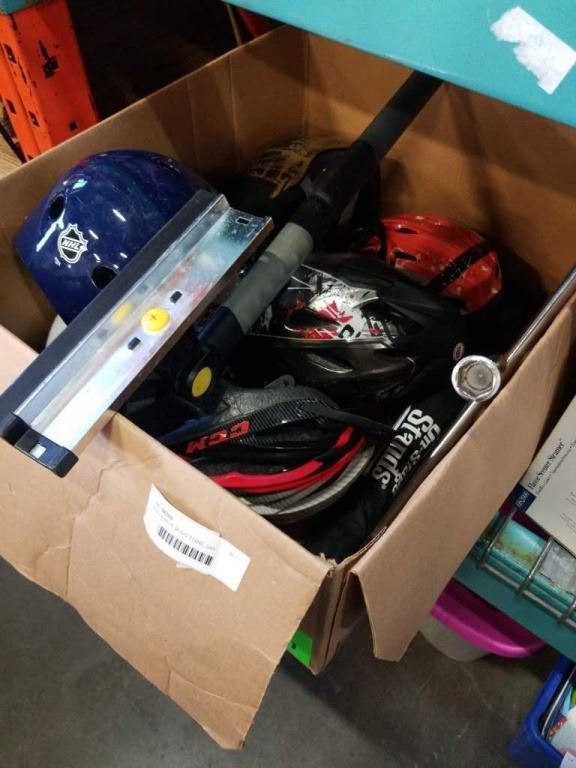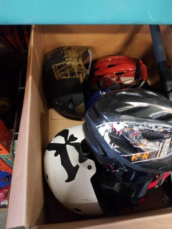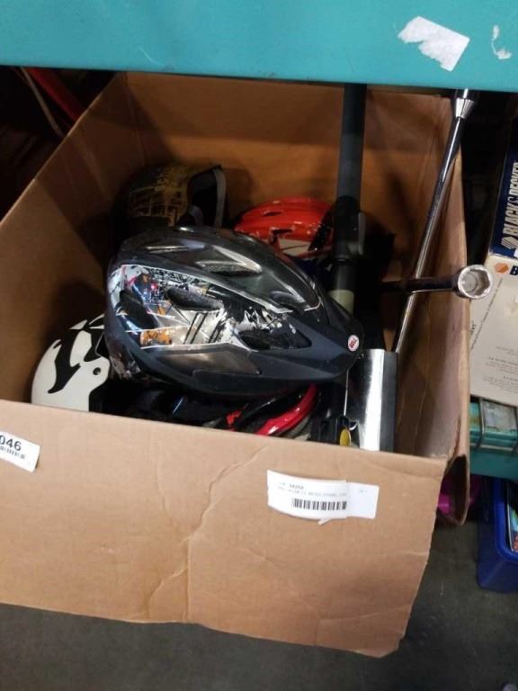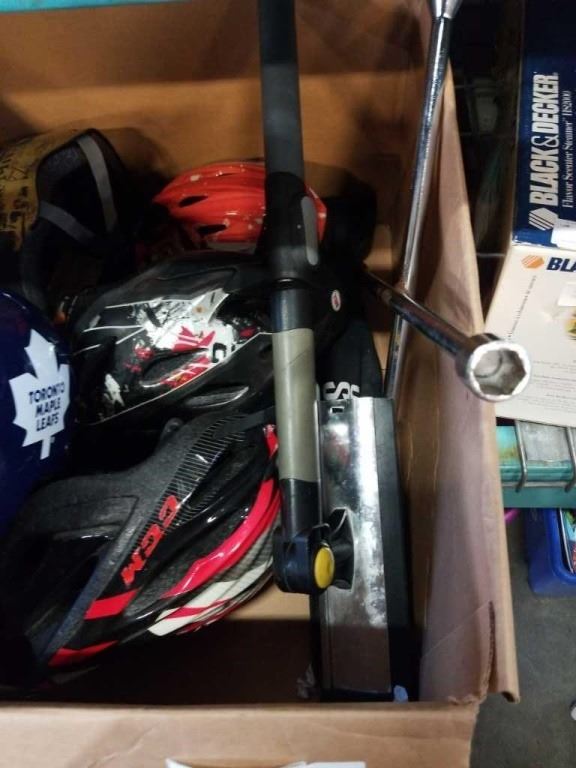 BIKE HELMETS, MUSIC STAND, CAR SQUEEGIE SCRAPER AND TIRE IRON WRENCH